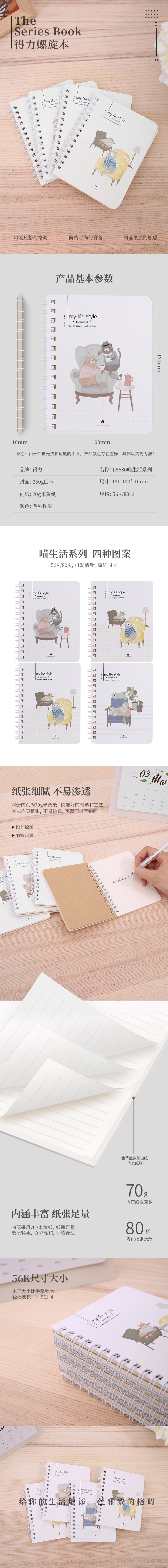 得力L5680,50K 80张空白本得力螺旋本小本喵生活口袋...