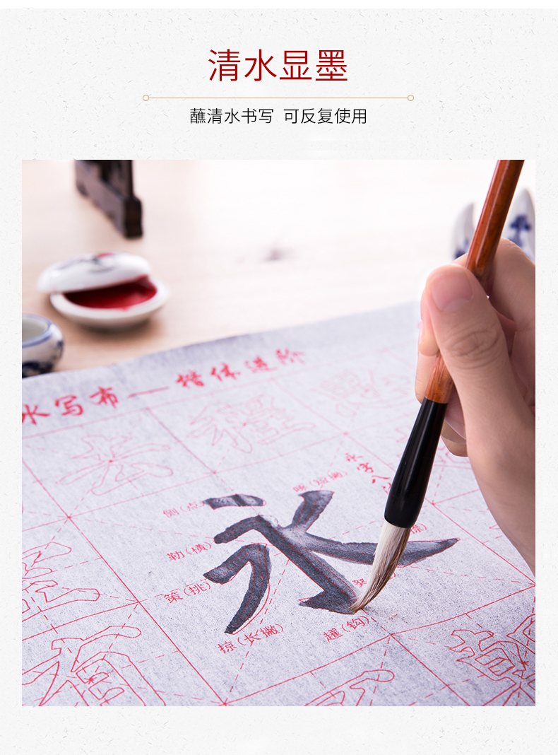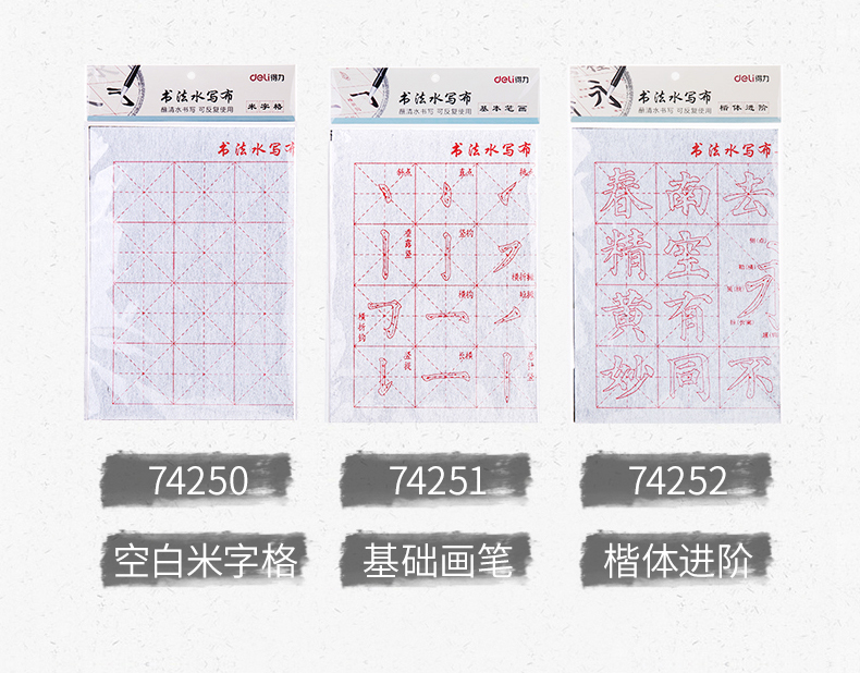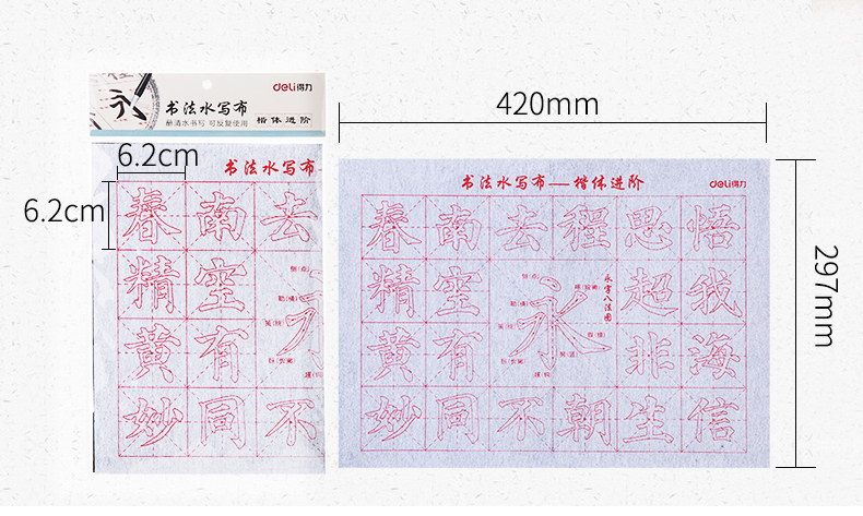 得力74252,毛笔字水写布套装无墨毛笔字帖书法入门重复书写...