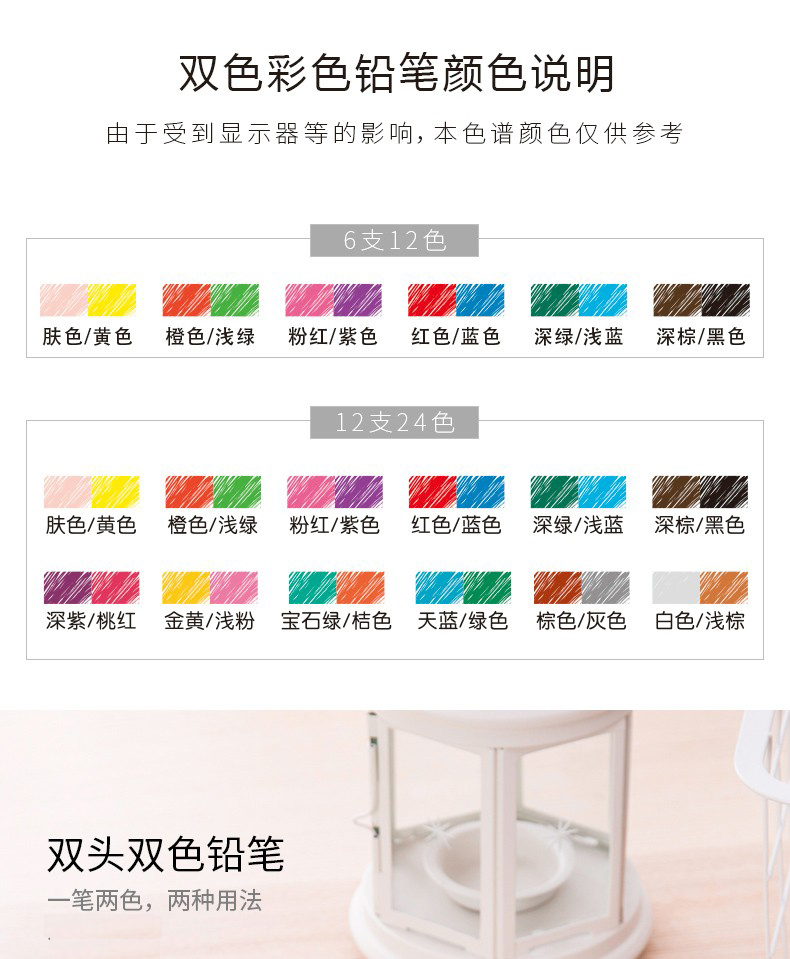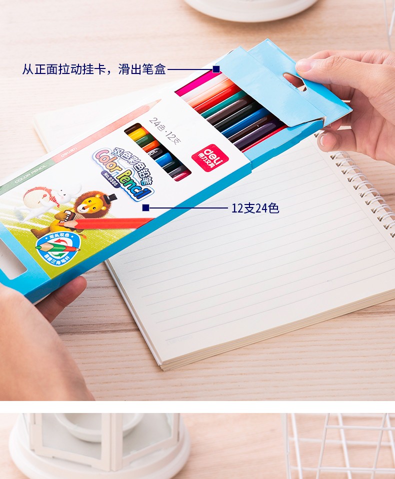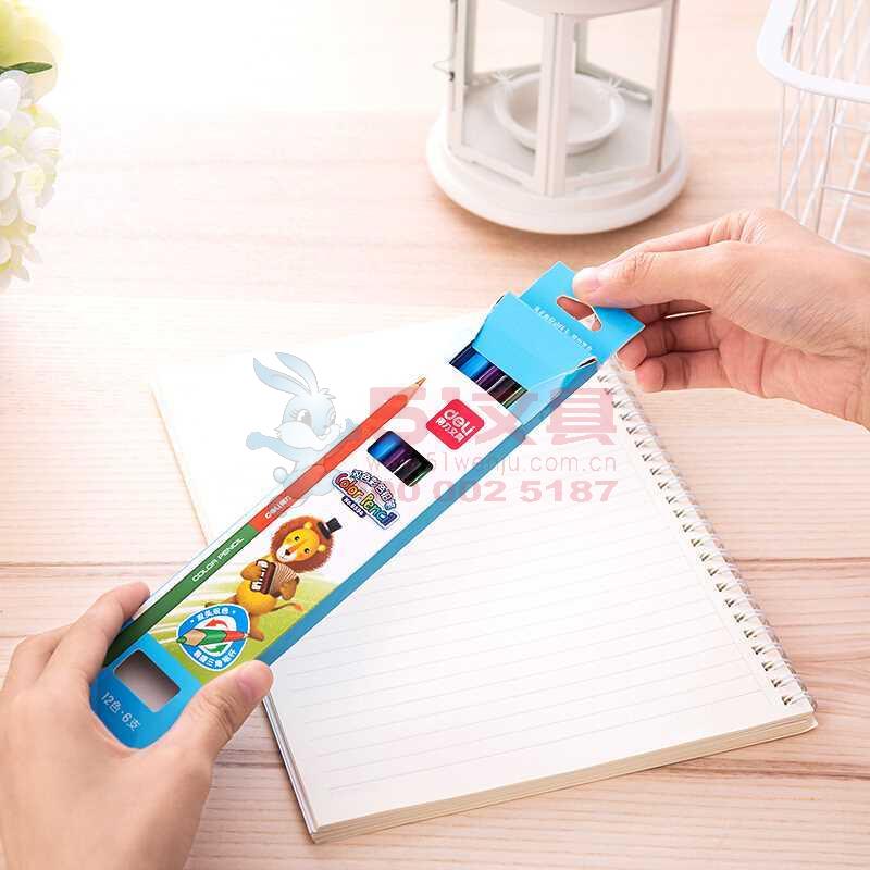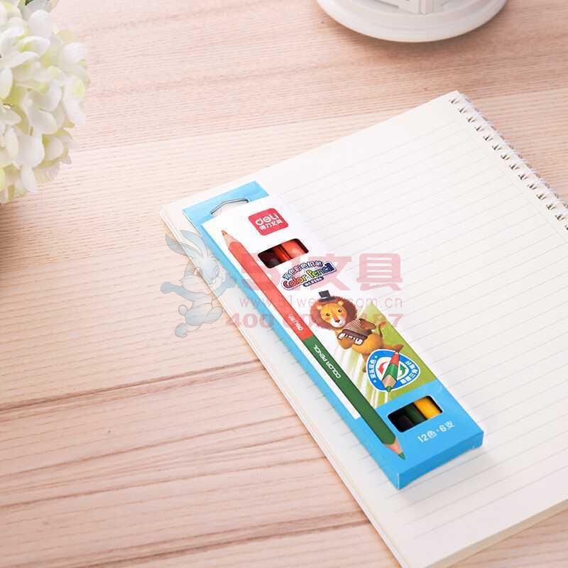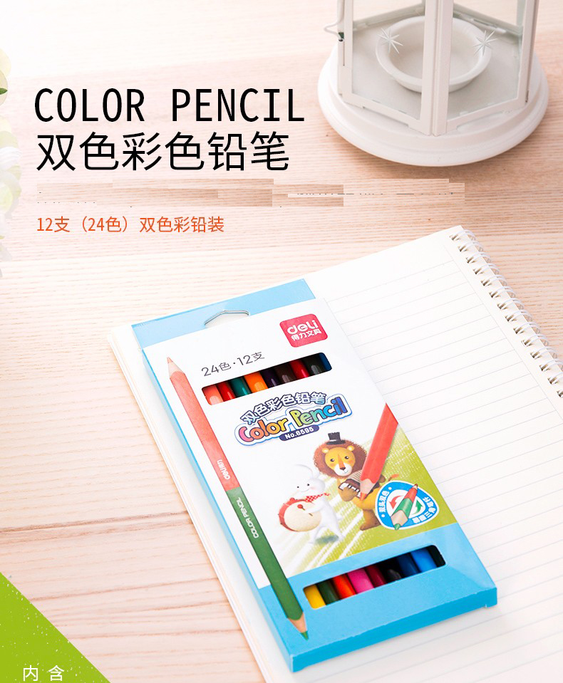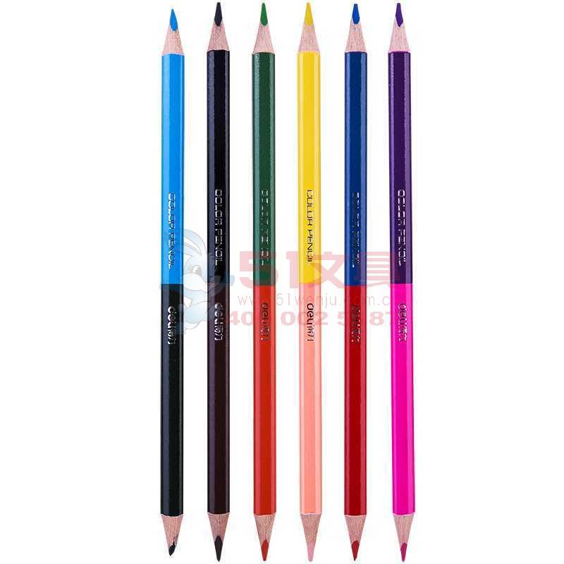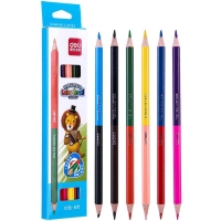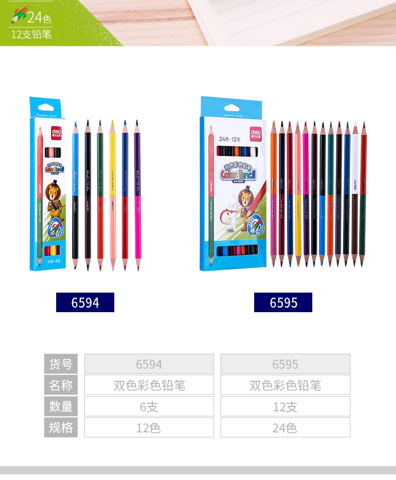 得力6594,双头12色彩色铅笔填色笔彩铅 6支纸盒装