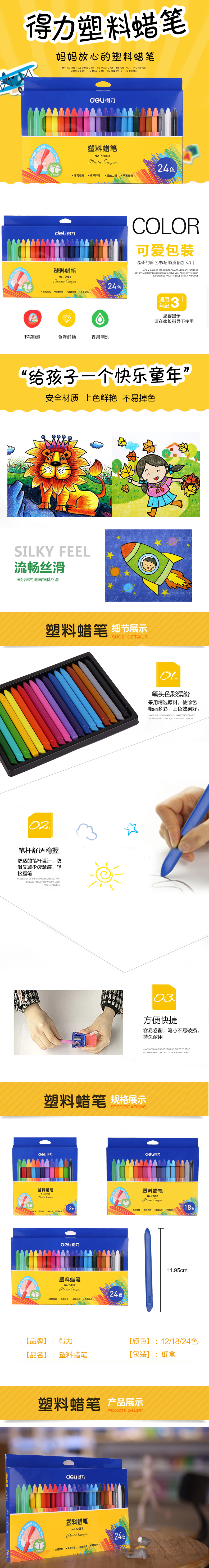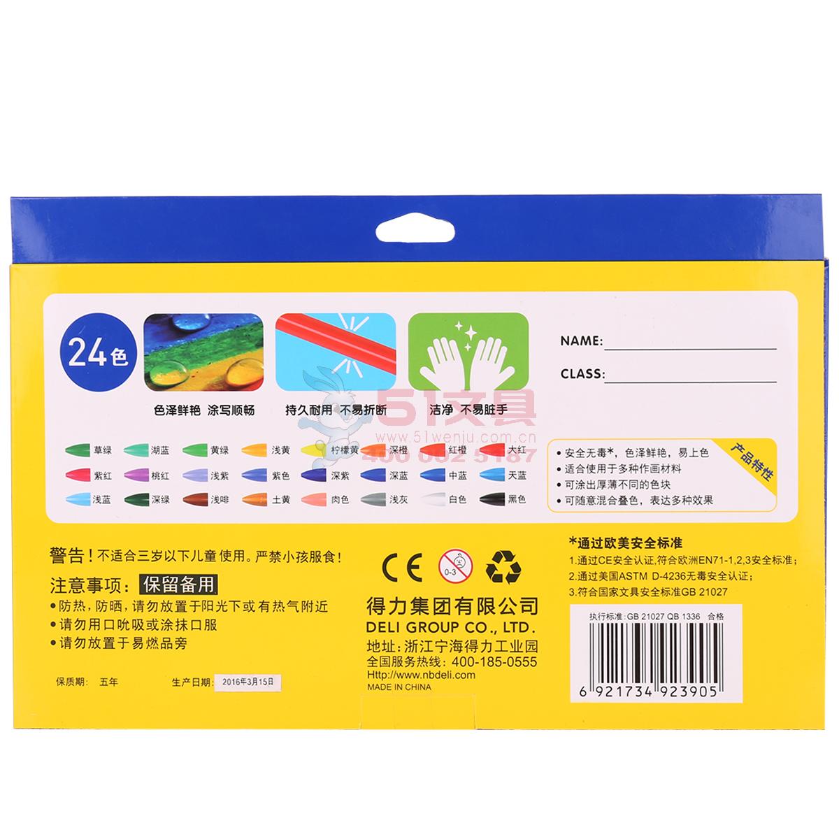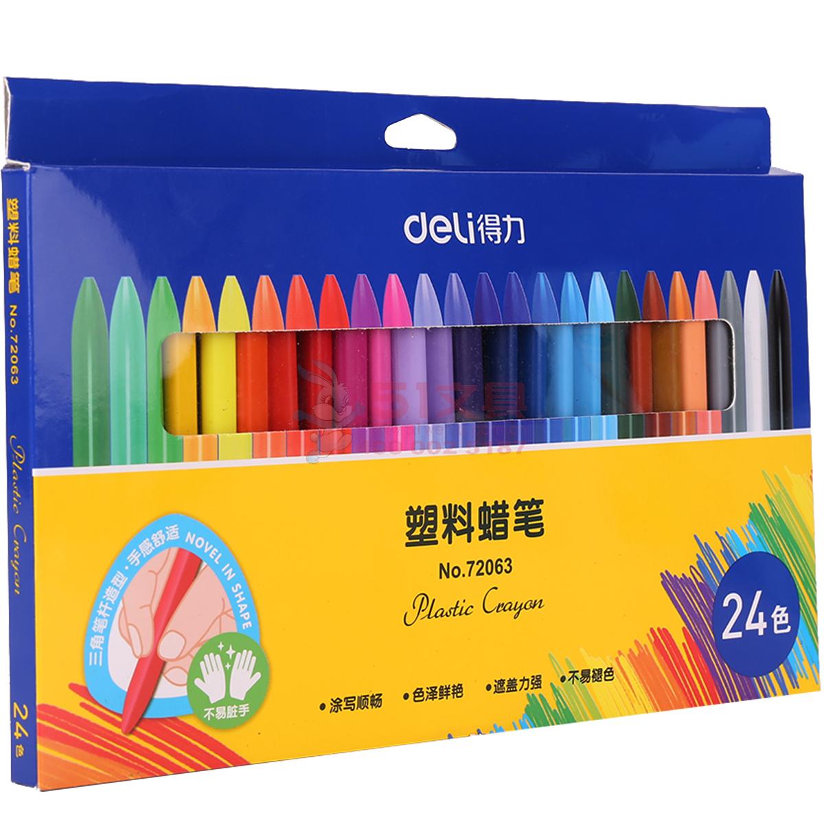 得力72063,24色幼儿童塑料蜡笔三角笔杆油画棒美术绘画