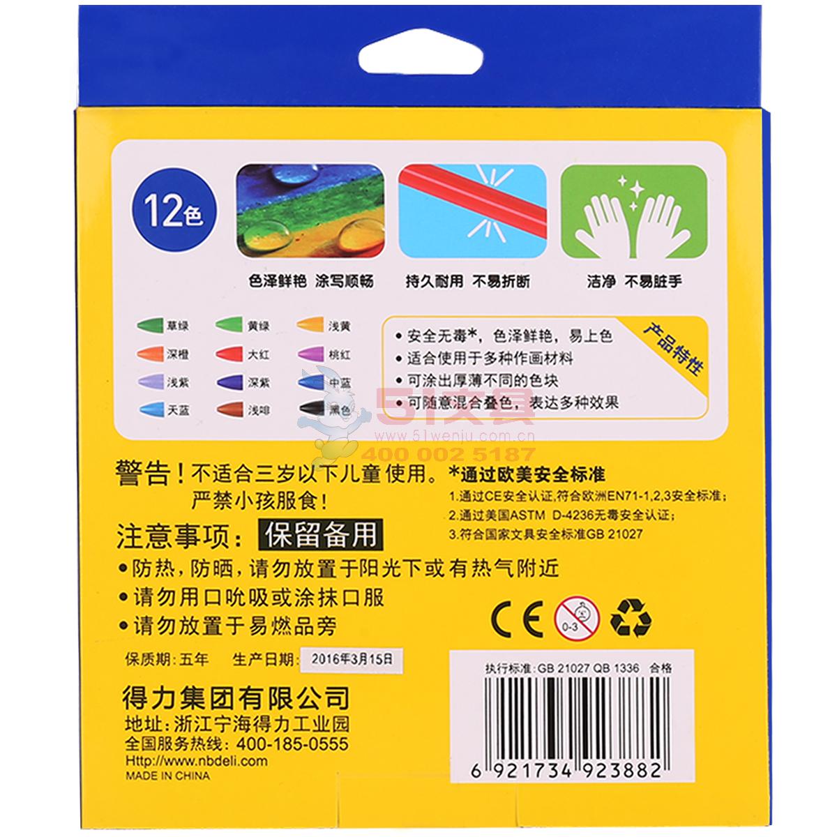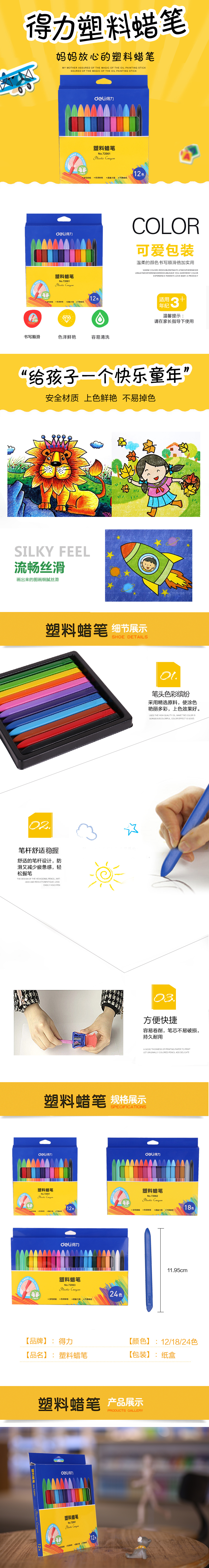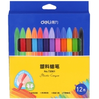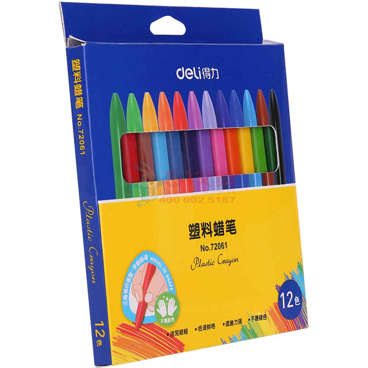 得力72061,12色幼儿童塑料蜡笔三角笔杆油画棒美术绘画
