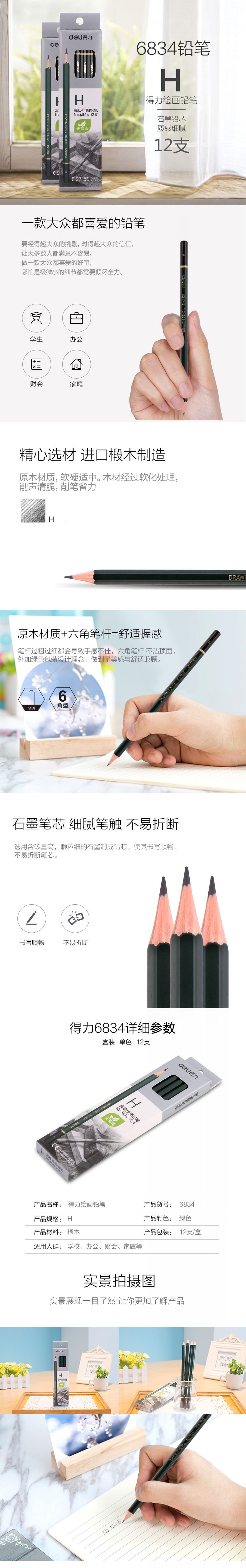得力6834,H高级绘图铅笔 工程图纸设计 素描、美术铅笔 ...