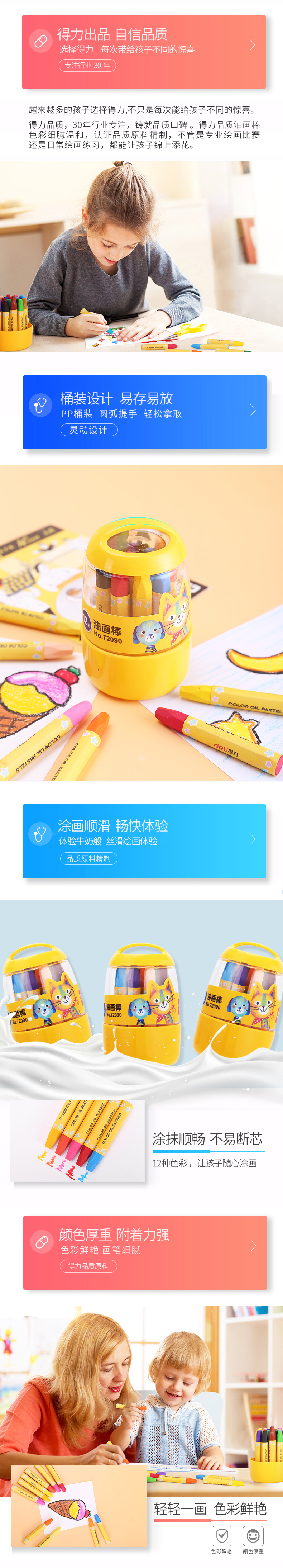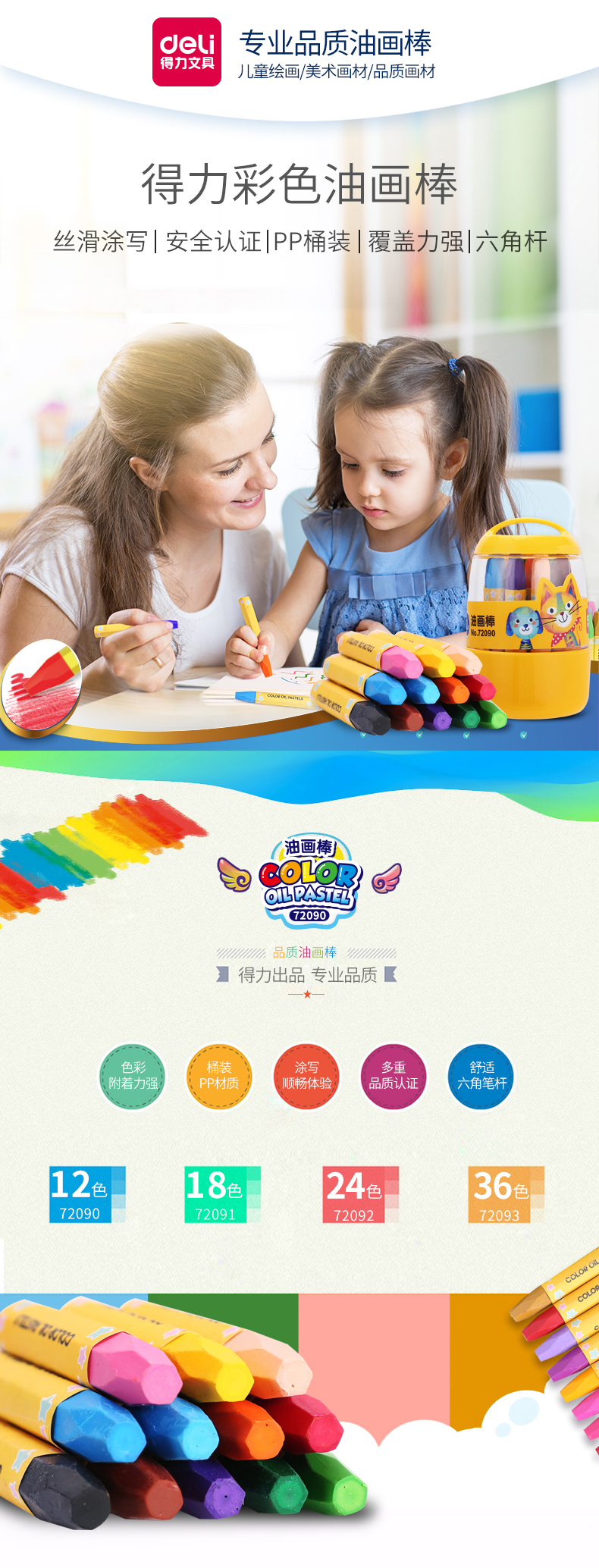 得力72093,36色桶装油画棒(1/12/48)学生儿童画...