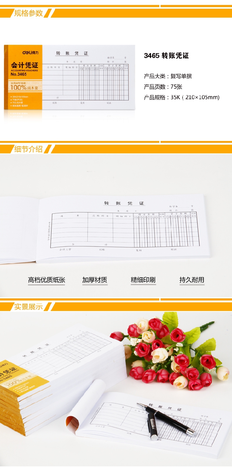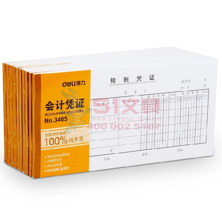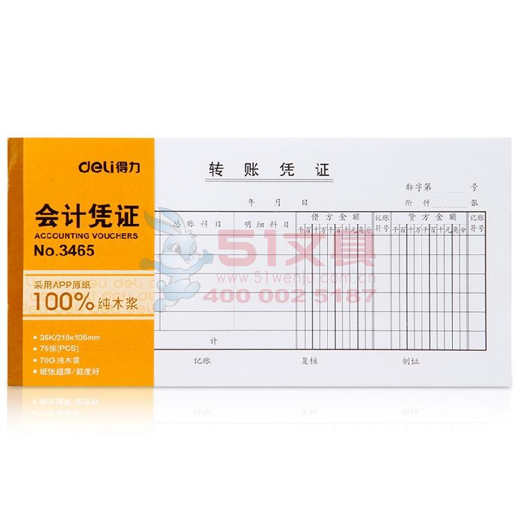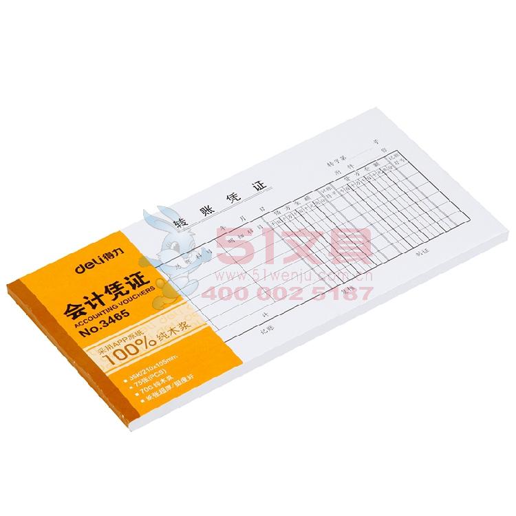 得力3465,35K75张转帐凭证 会计凭证转账单据 木浆纸...