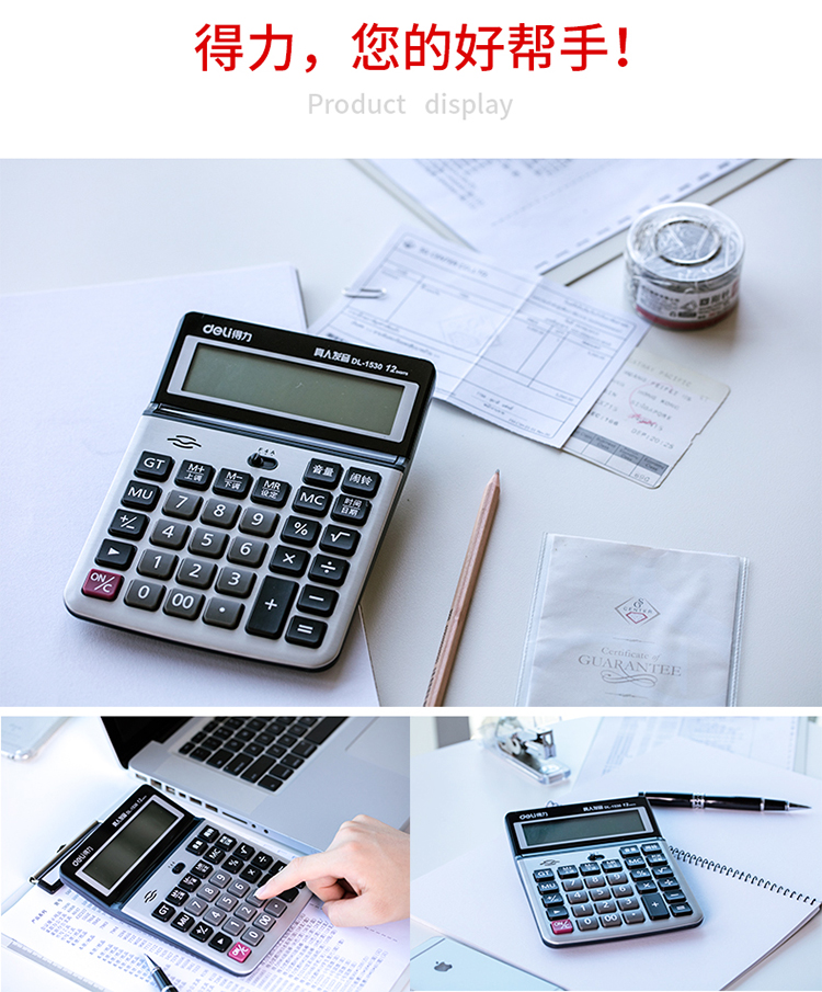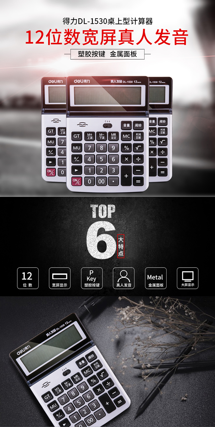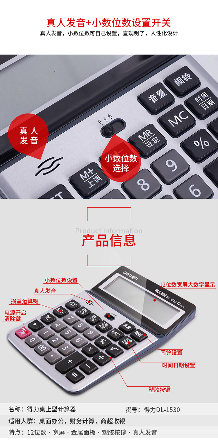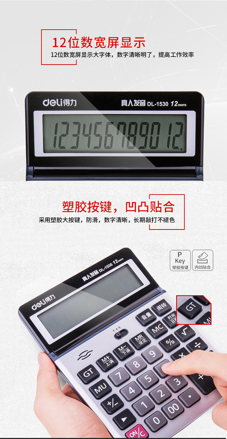 得力1530,语音计算器(1/10/40)大屏幕12位数语音...
