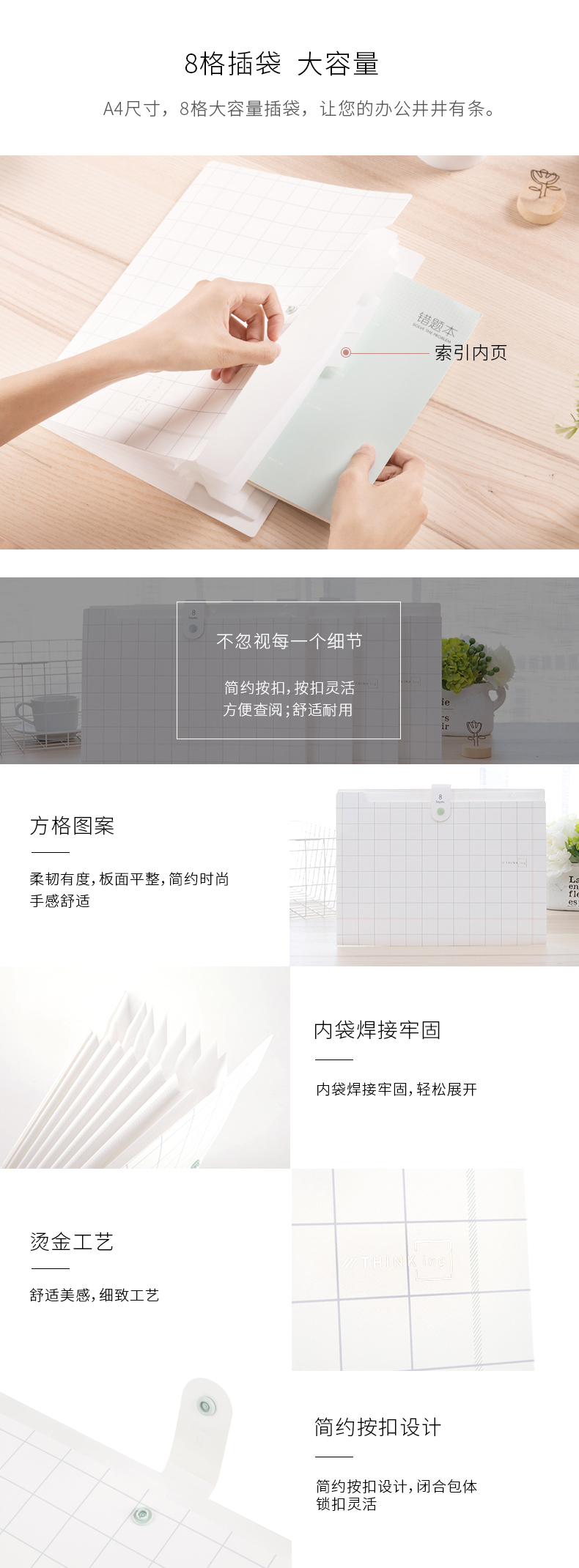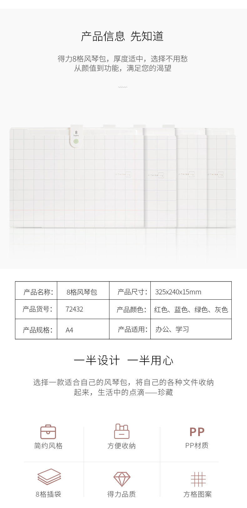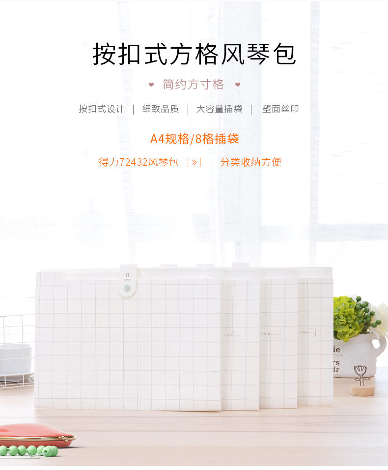 得力72432,方寸格A4风琴包暗扣8格分类票据包收纳便携式...