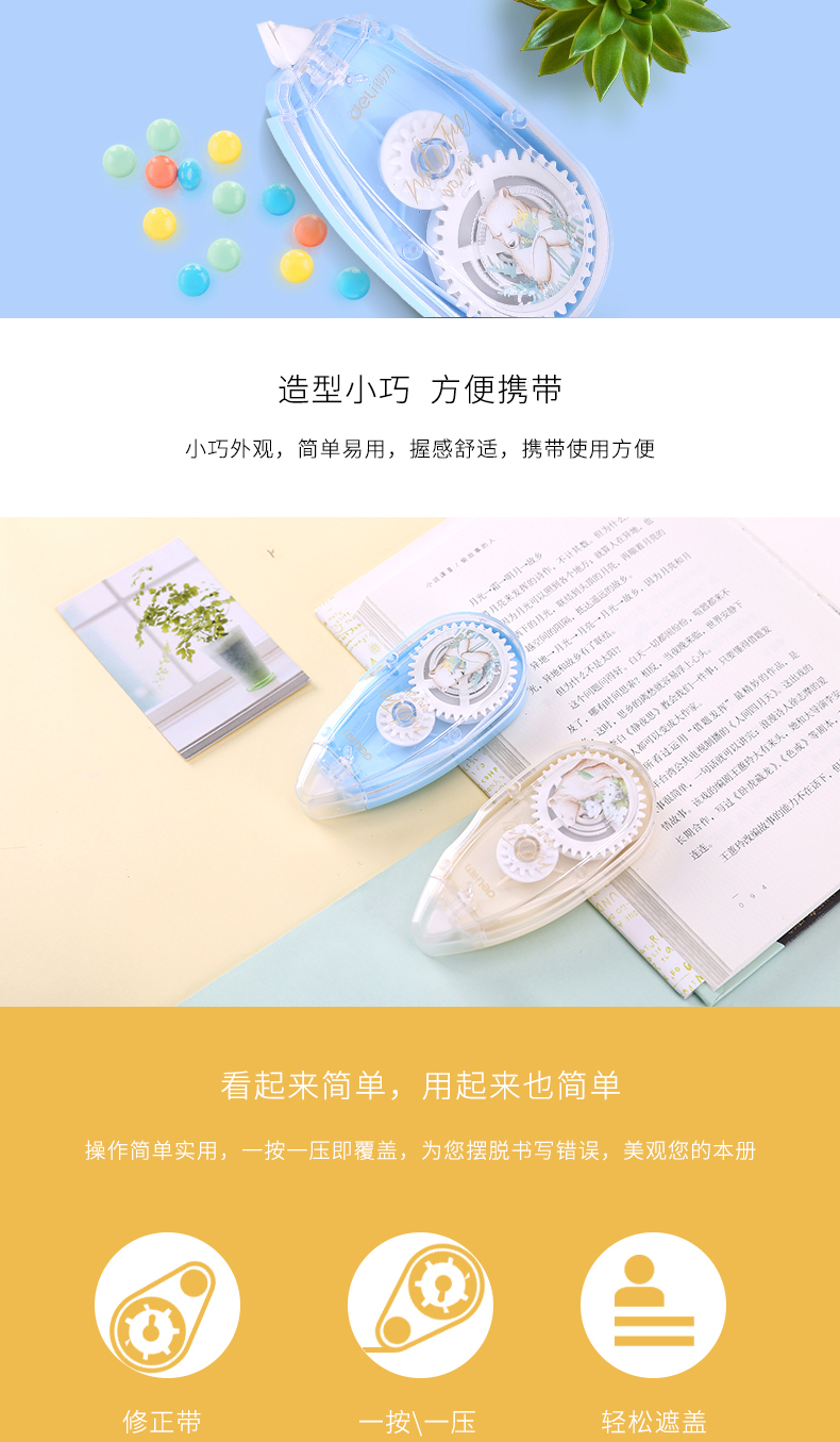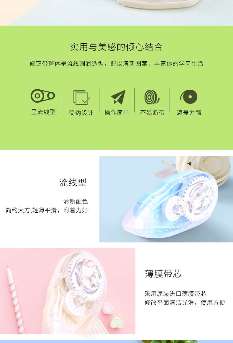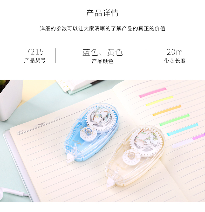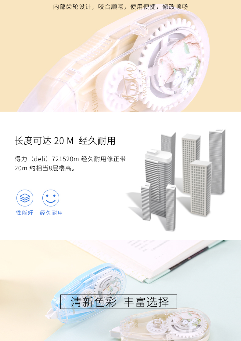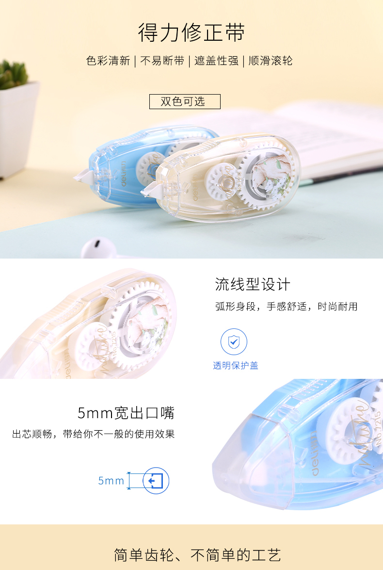得力7215,5mm*20m修正带学生修正带大容量涂改带改错...