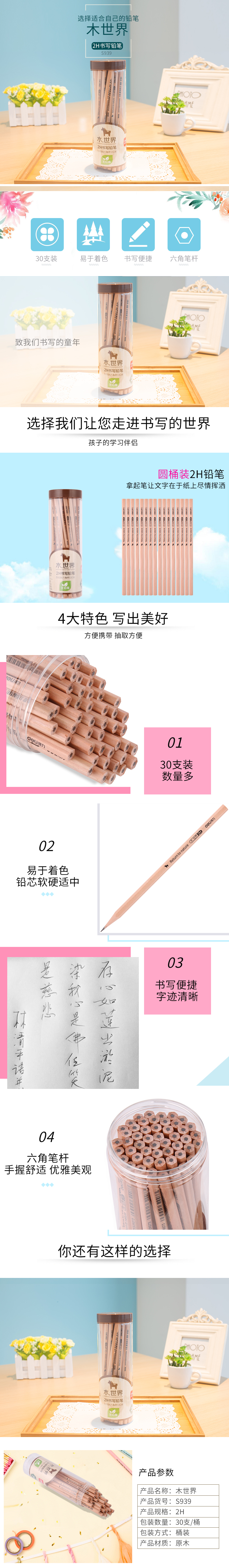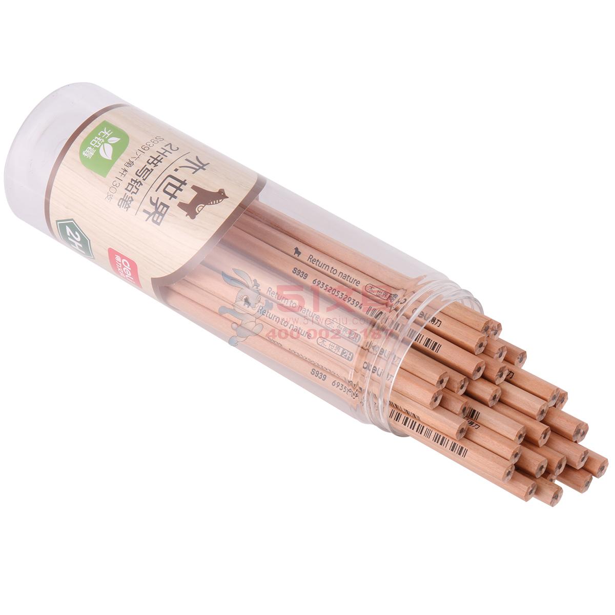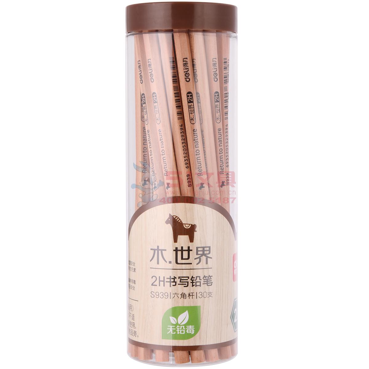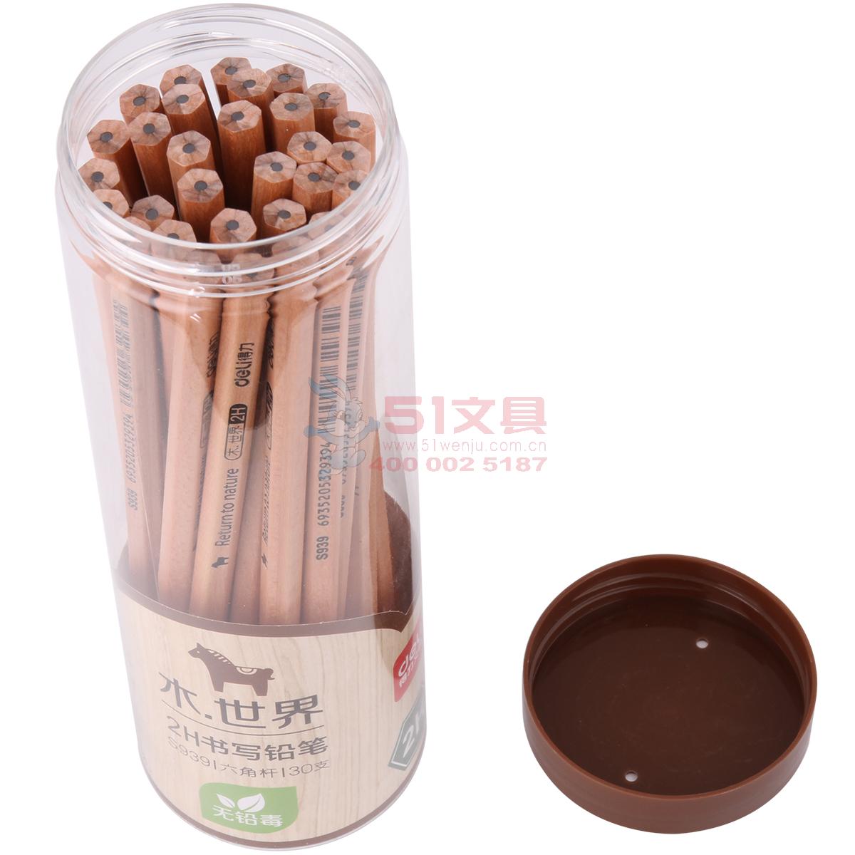 得力S939,铅笔铅笔花格木原木桶装六角无毒学生写字铅笔