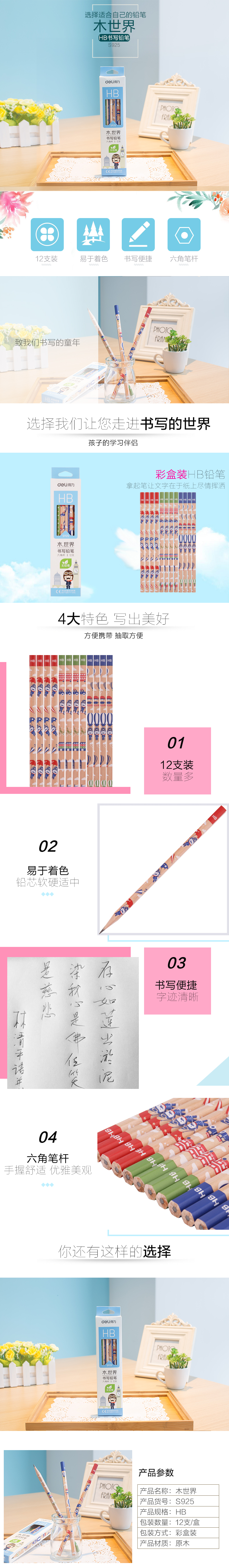 得力S925,铅笔 学生铅笔 HB铅笔 六角杆可爱卡通绘图铅...