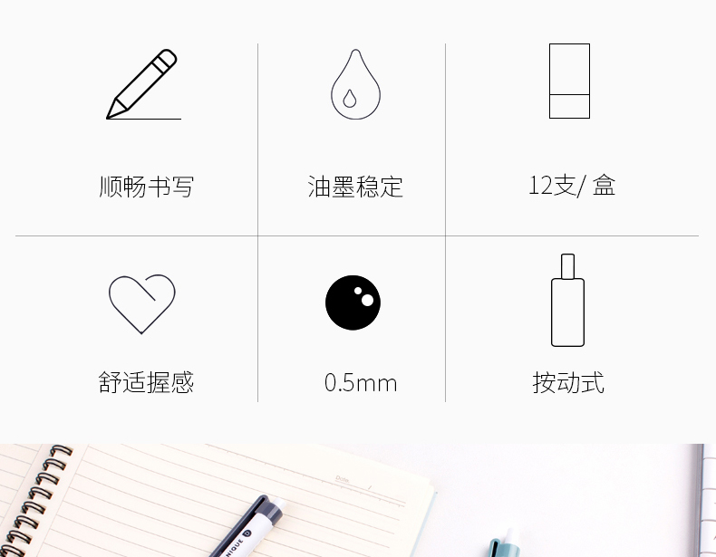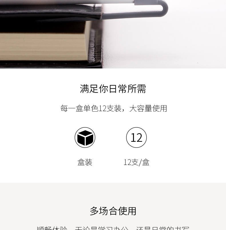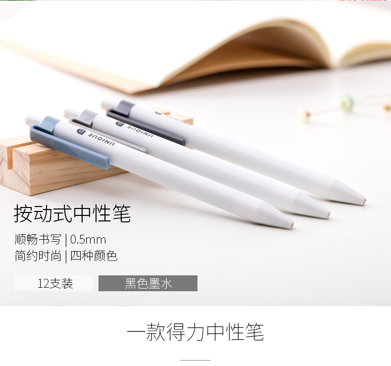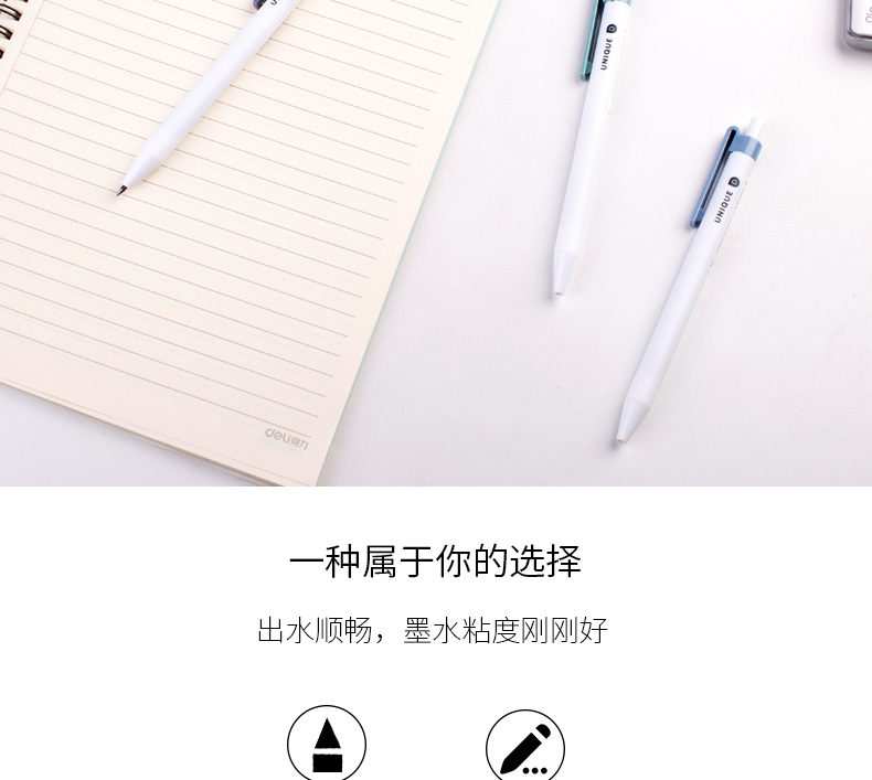 得力A013,0.5mm中性笔黑笔水笔简约时尚按动出笔 子弹...