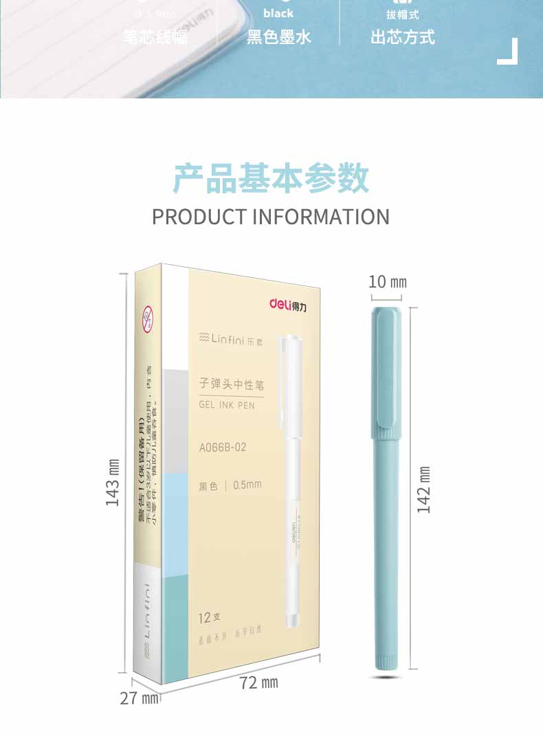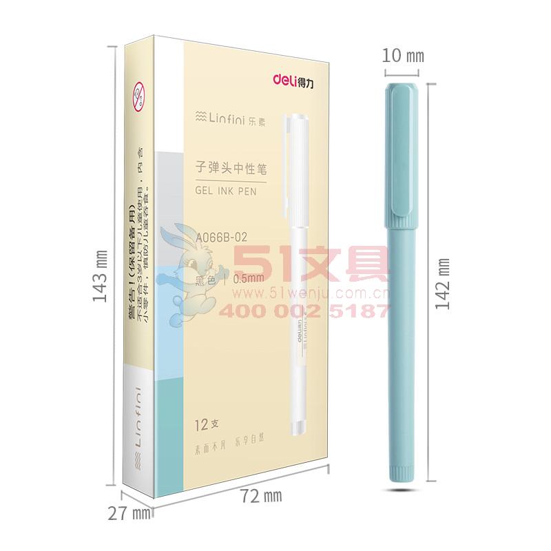 得力A066B-02,可爱简约小清新学生中性笔0.5mm子弹...