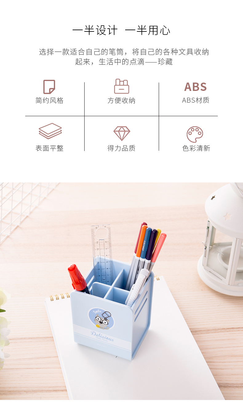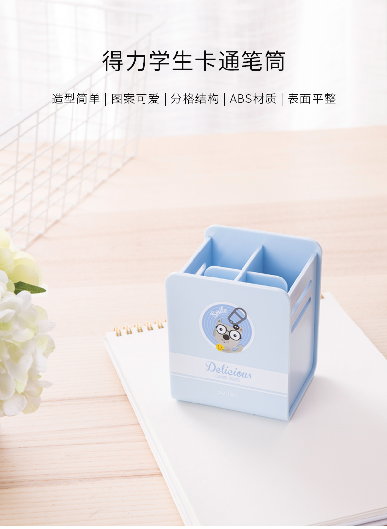 得力9126,学生桌面收纳笔筒办公用品小清新创意笔类整理盒时...