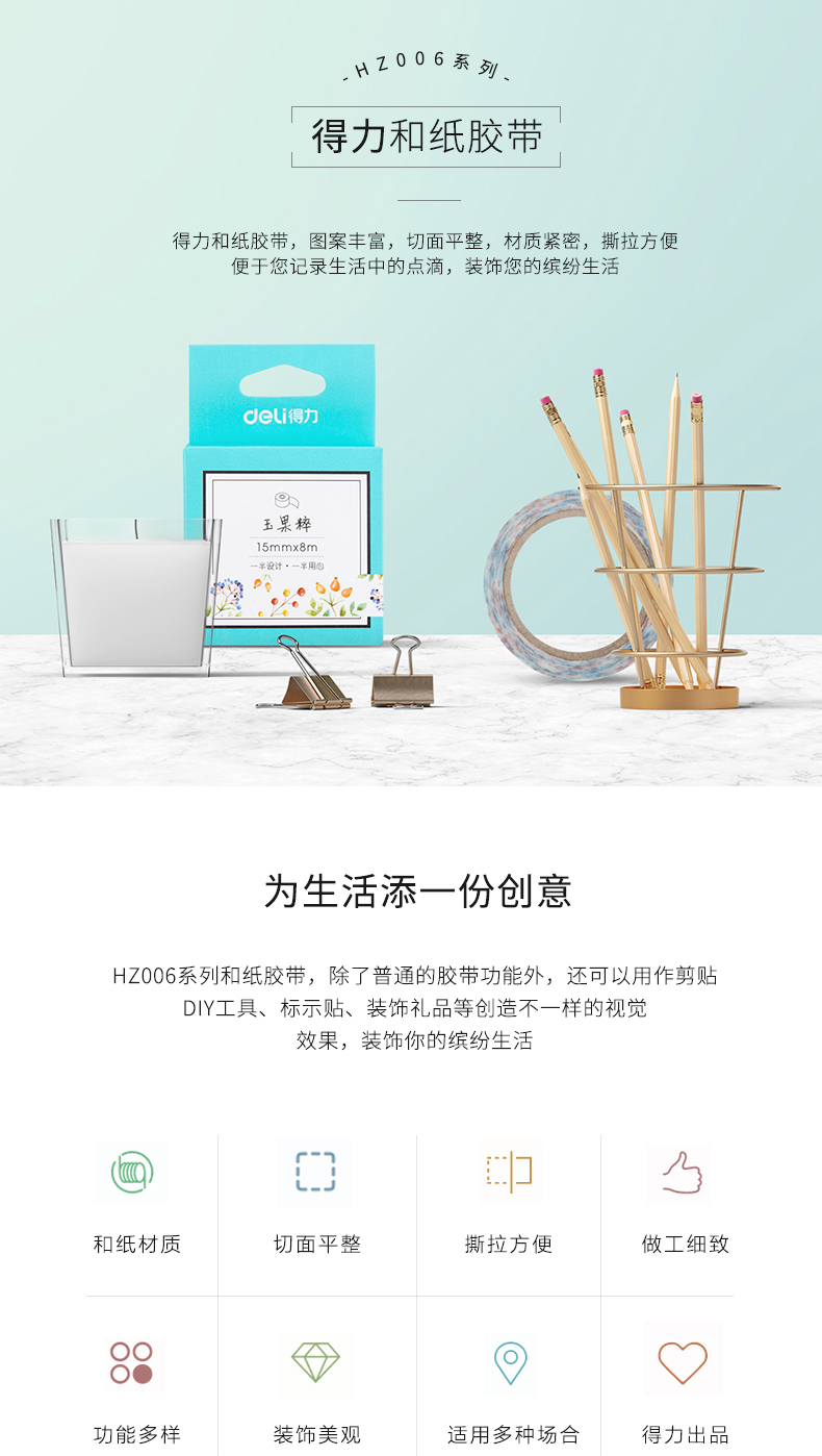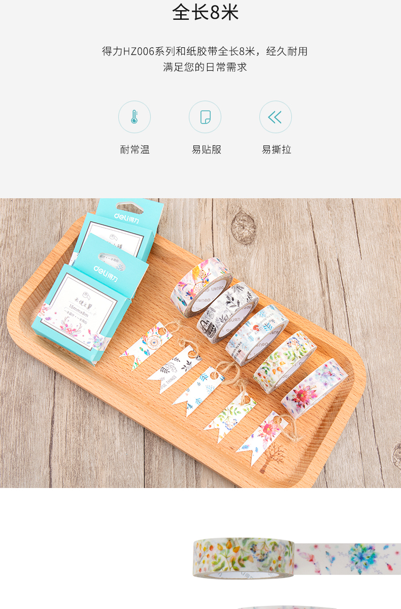 得力HZ006,15mm*8m和纸胶带分装整卷diy手撕胶带...