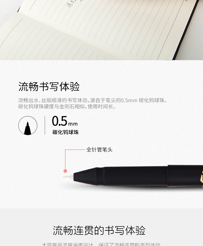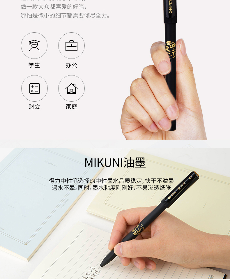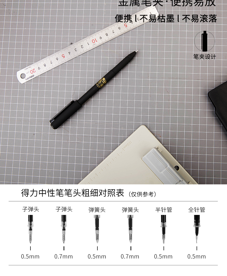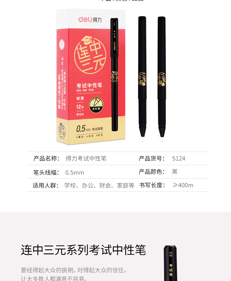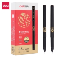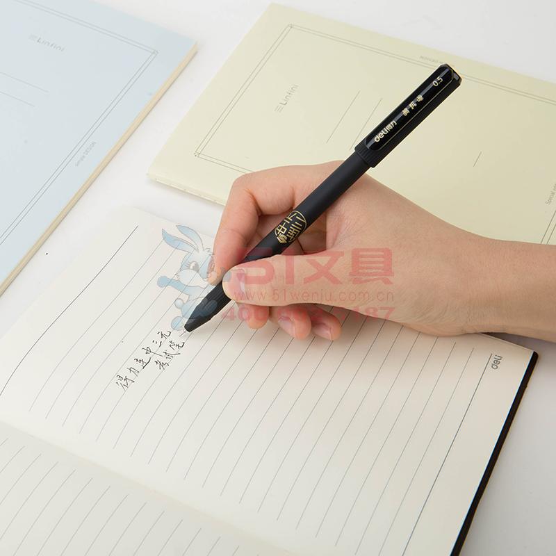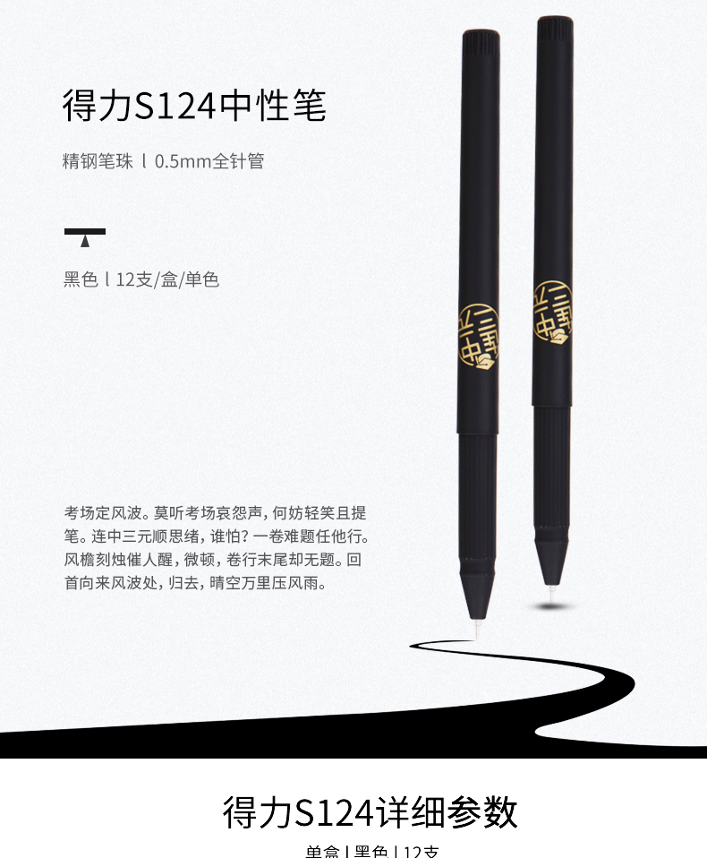 得力S124,0.5mm考试中性笔全针管子弹头黑色水笔拔帽笔...