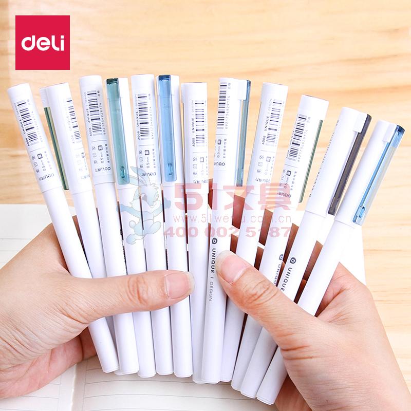 得力A008,0.5mm中性笔 黑色水笔全针管黑笔学生碳素笔...
