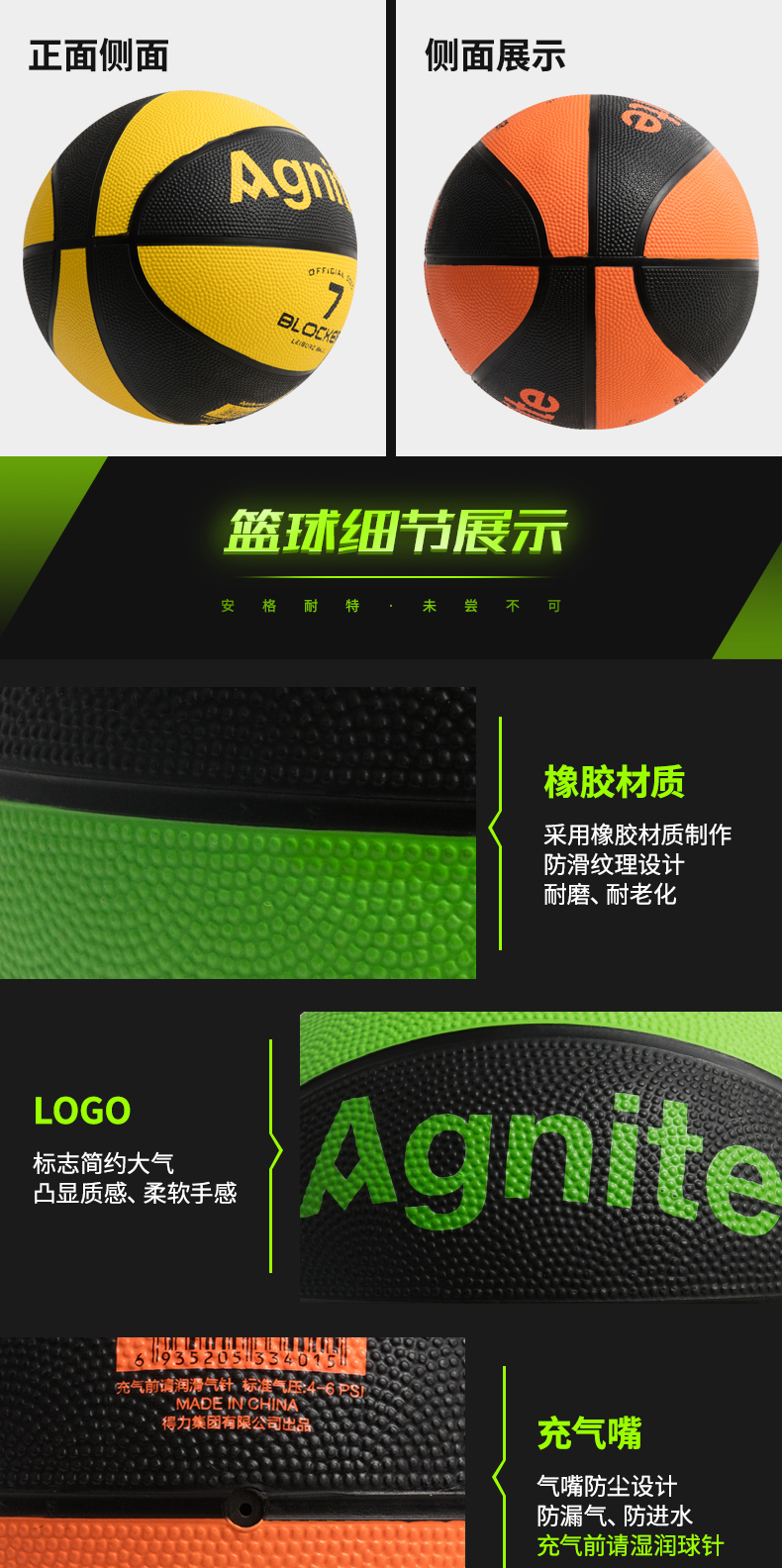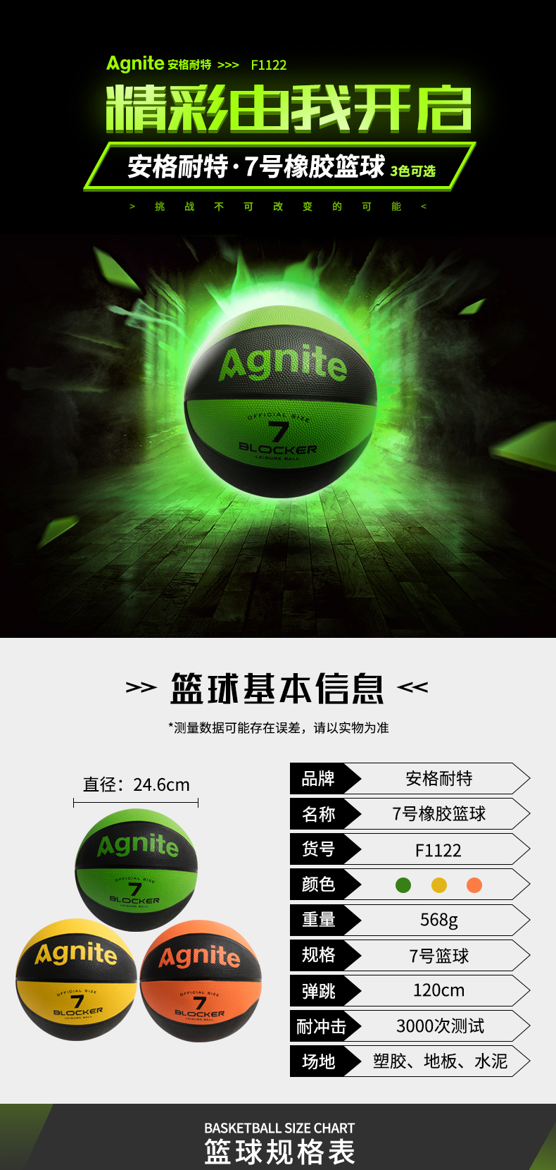 安格耐特F1122,7号橡胶篮球(1/36)7号标准篮球
