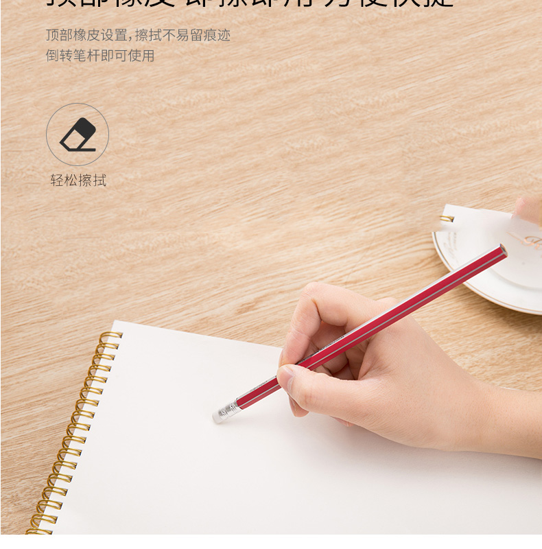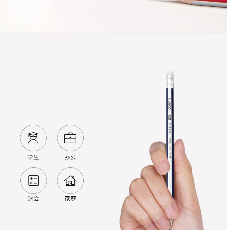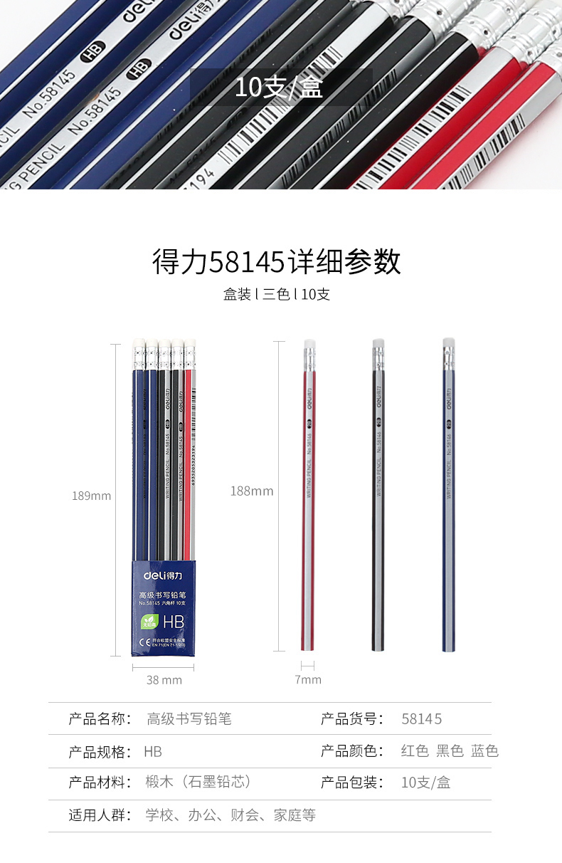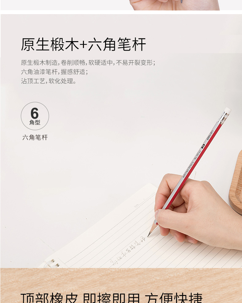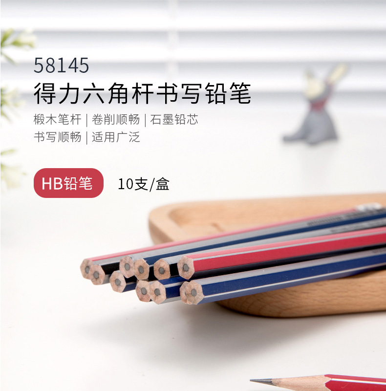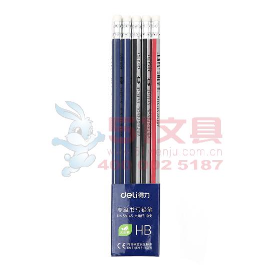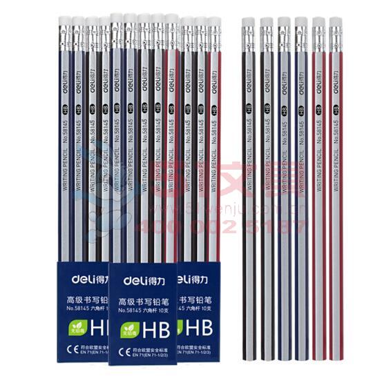 得力58145,带橡皮擦六角笔杆HB铅笔(1/12/288)...