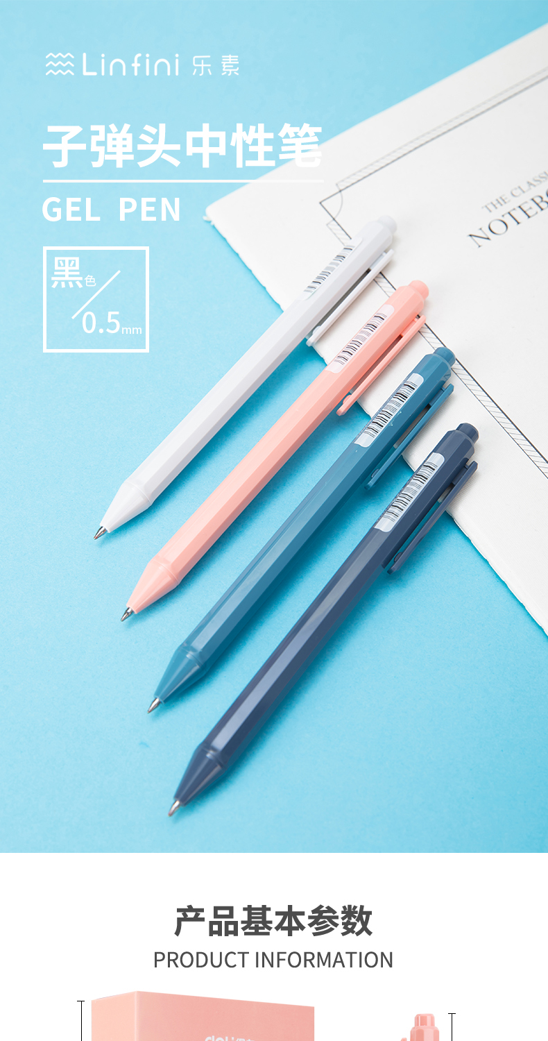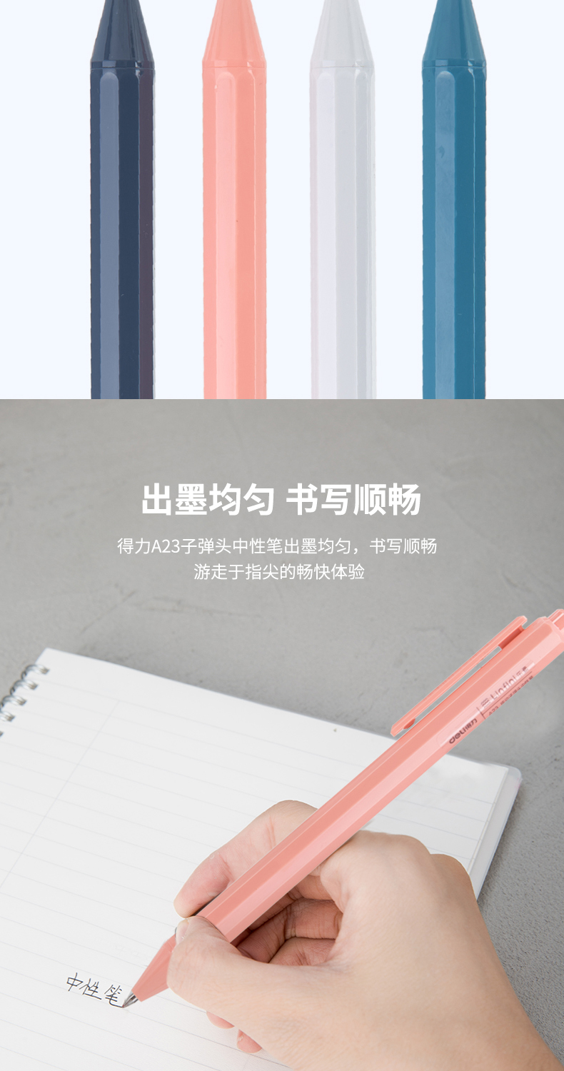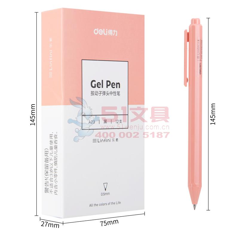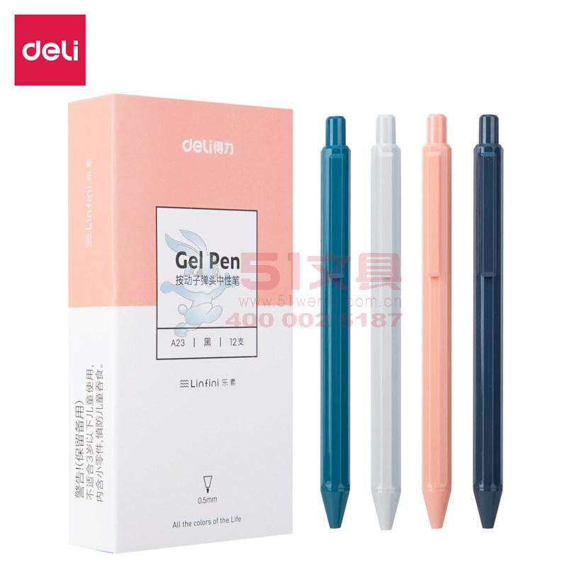 得力A23,0.5mm中性笔乐素小清新办公签字笔子弹头按动碳...