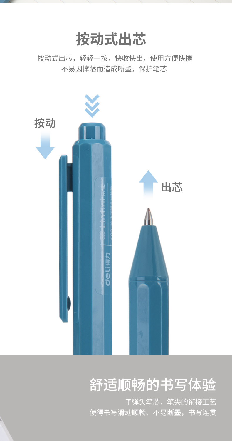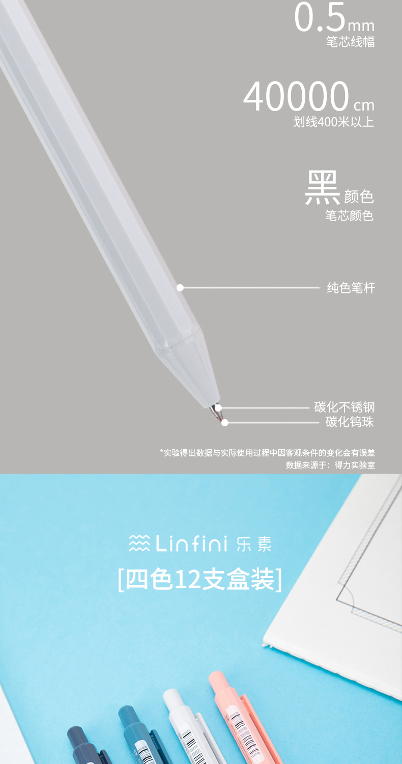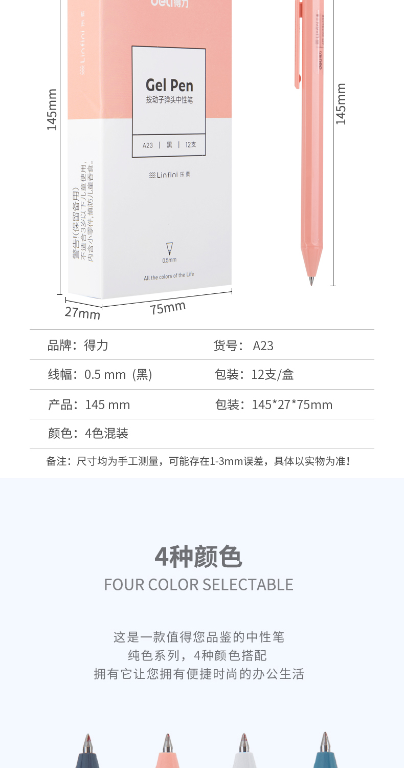得力A23,0.5mm中性笔乐素小清新办公签字笔子弹头按动碳...