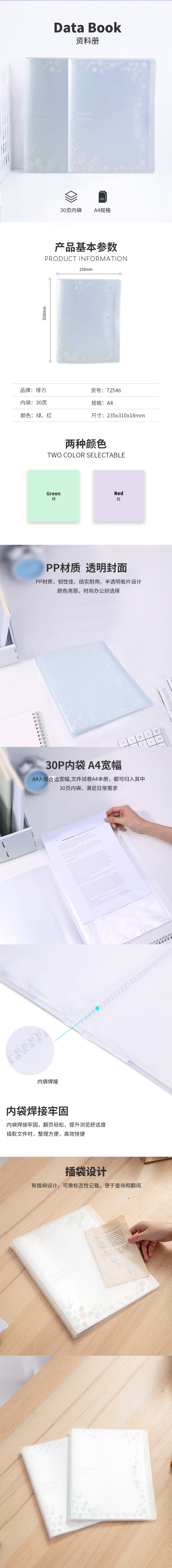 得力72546,A4 30页资料册试卷袋(1/12/72)透...