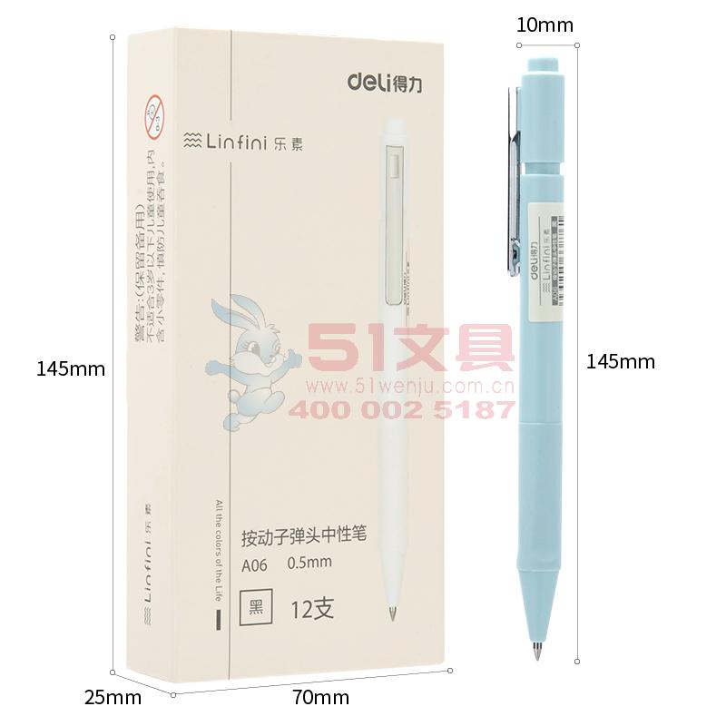 得力A06,0.5mm乐素按动中性笔(12/144/1728...