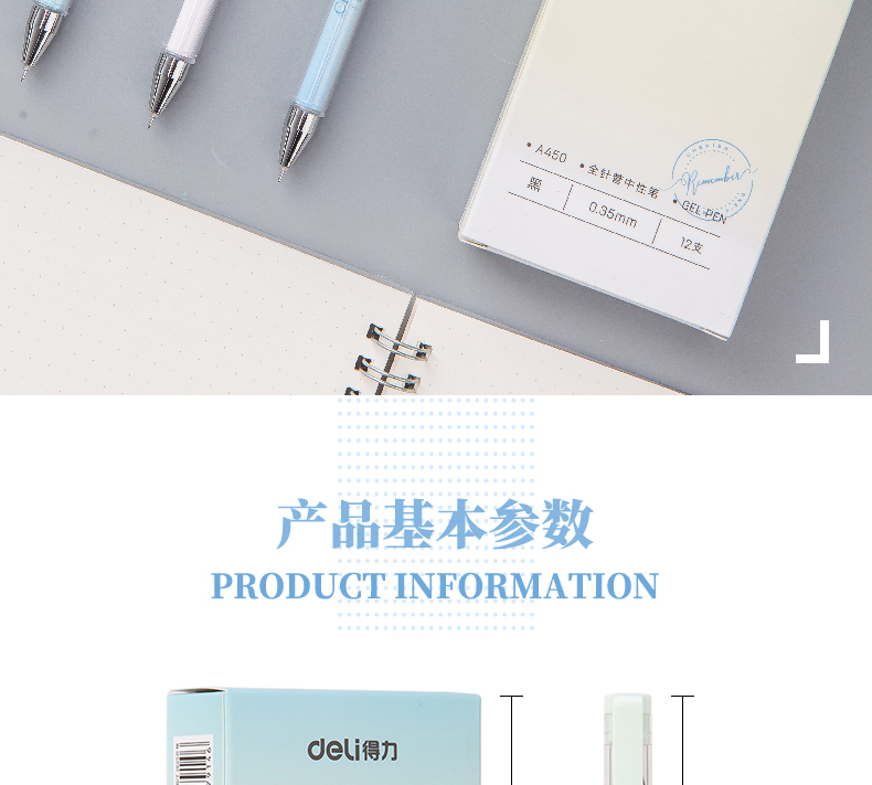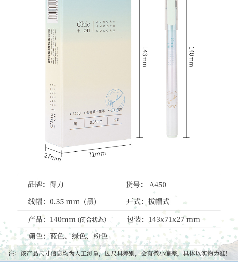 得力A450,0.35mm淡雅系列学生中性笔(12/144/...