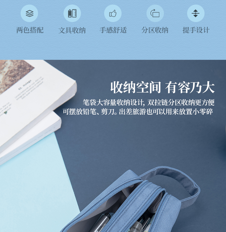 得力66855,多功能笔袋(1/12/96)双拉链多层设计男...
