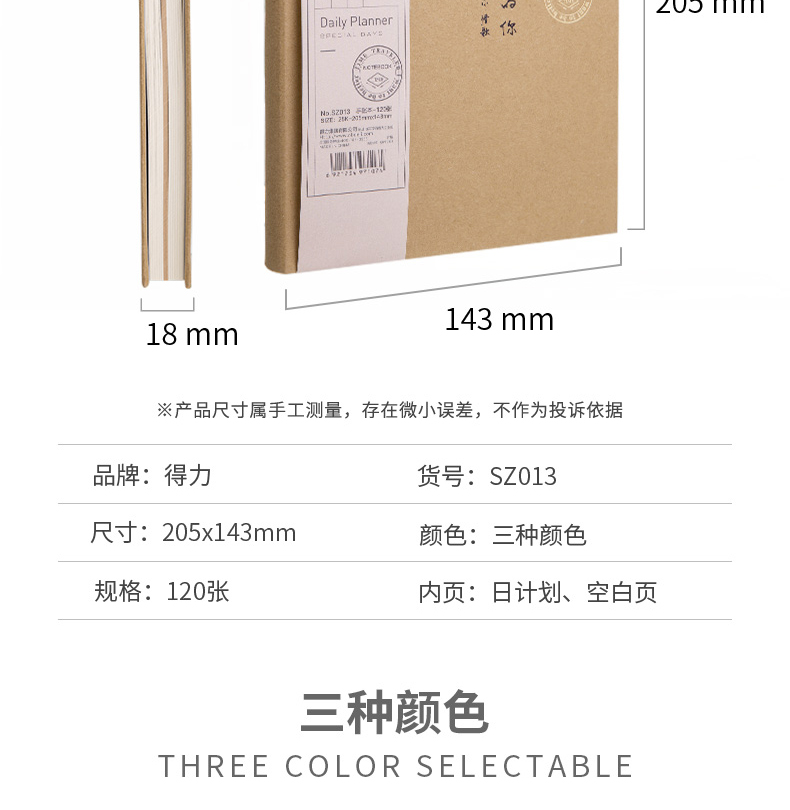 得力SZ013,25K 120页学生手账本(1/16/64)...