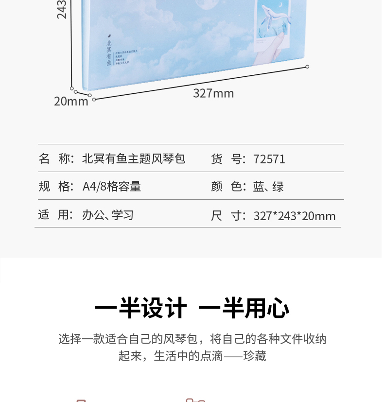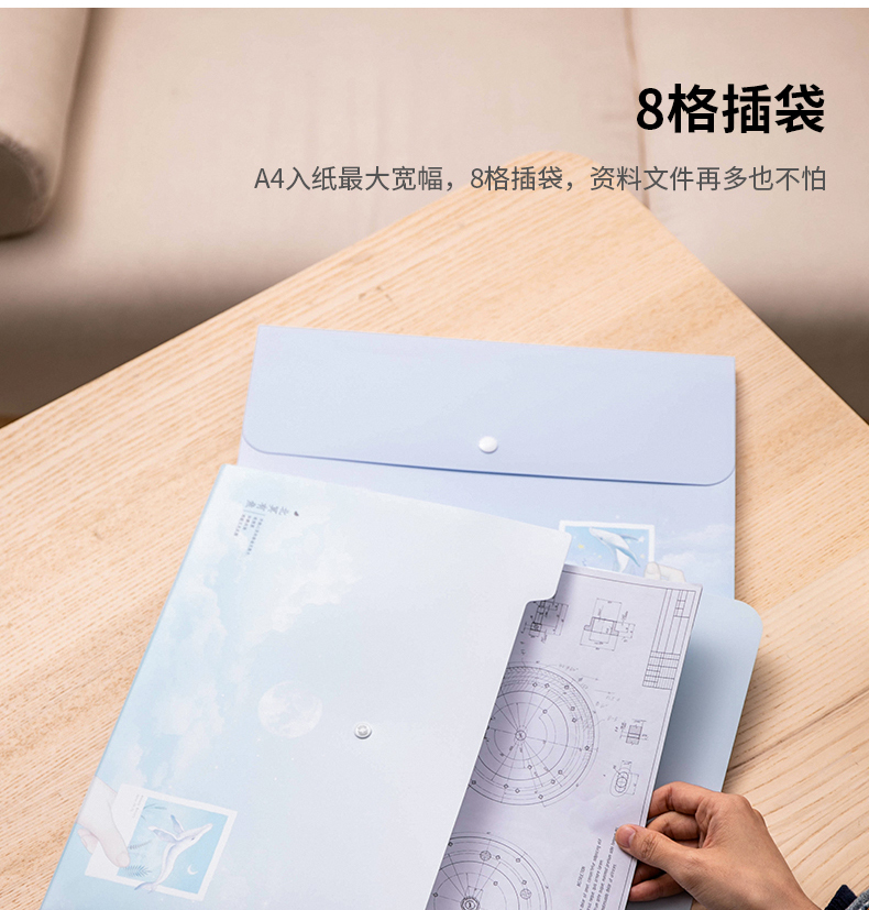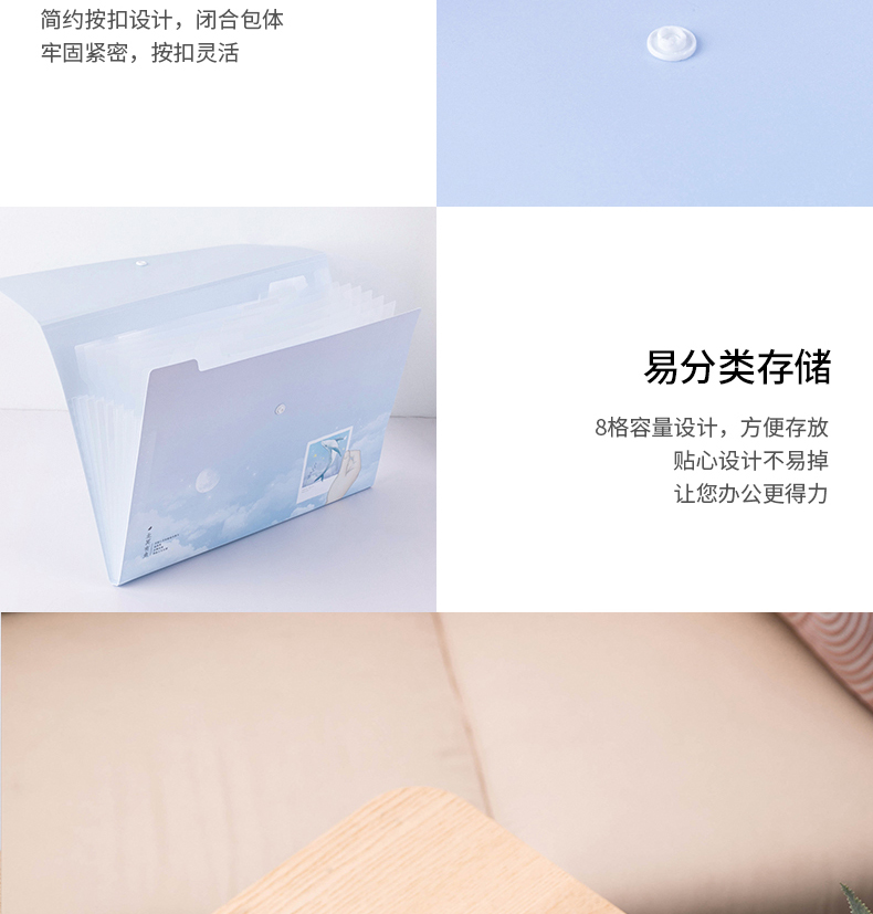 得力72571,A4 8格风琴包按扣式手提资料文件包(1/3...