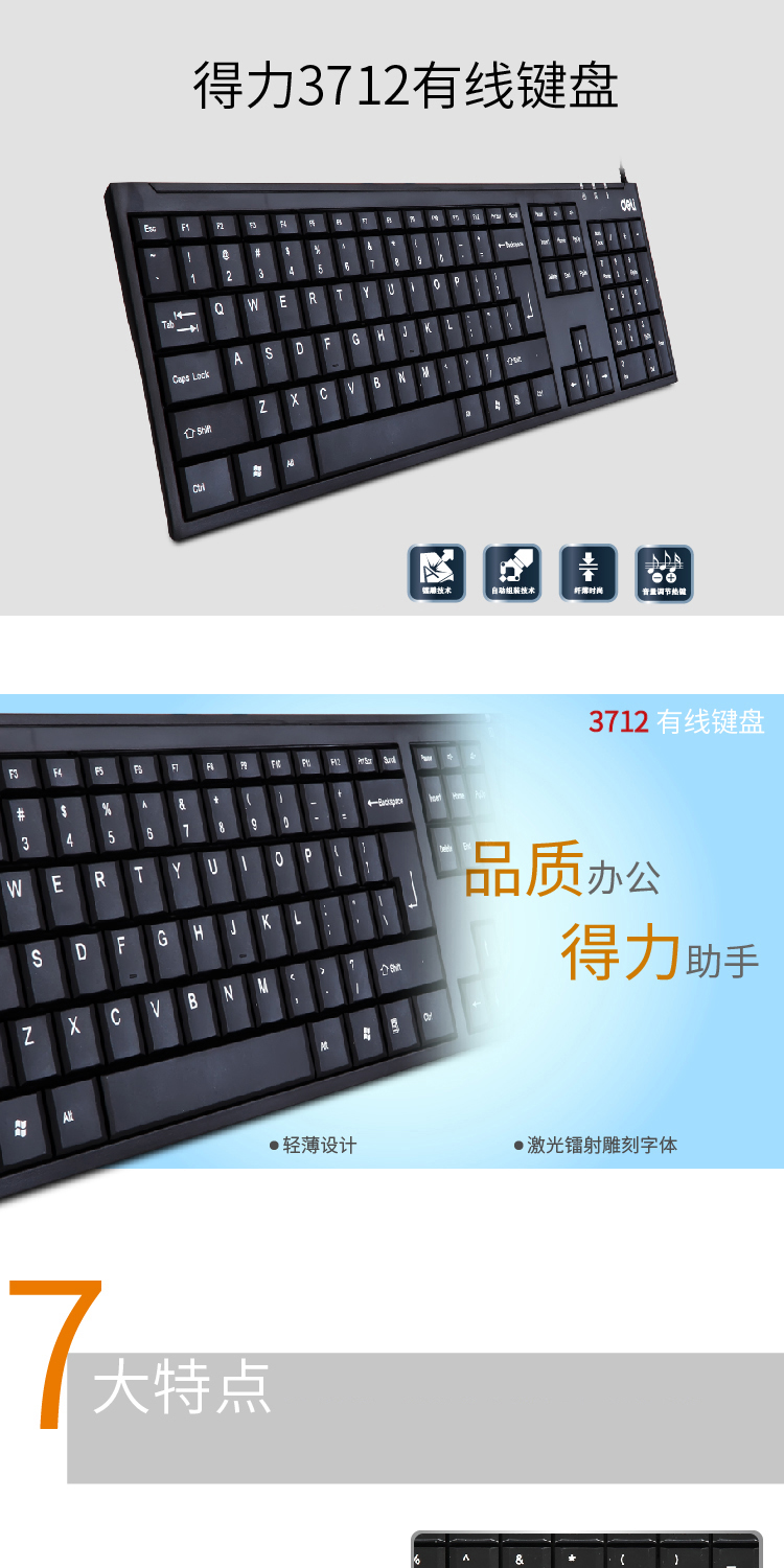 得力(deli)3712 有线usb键盘电脑键盘有线键盘计算...