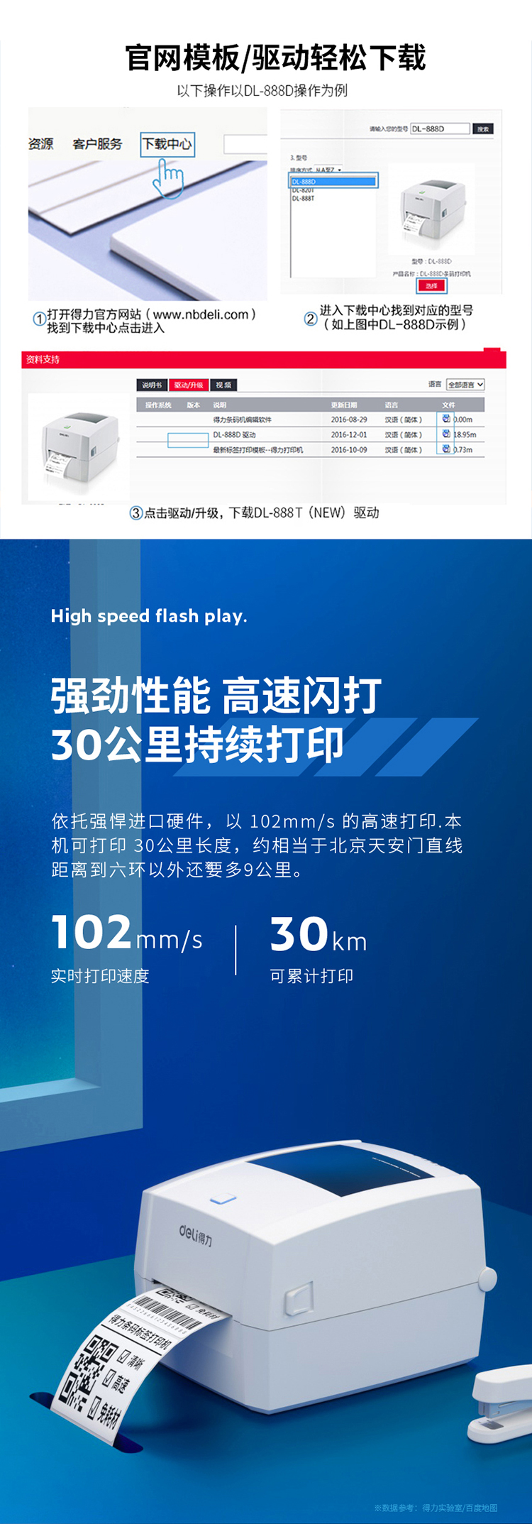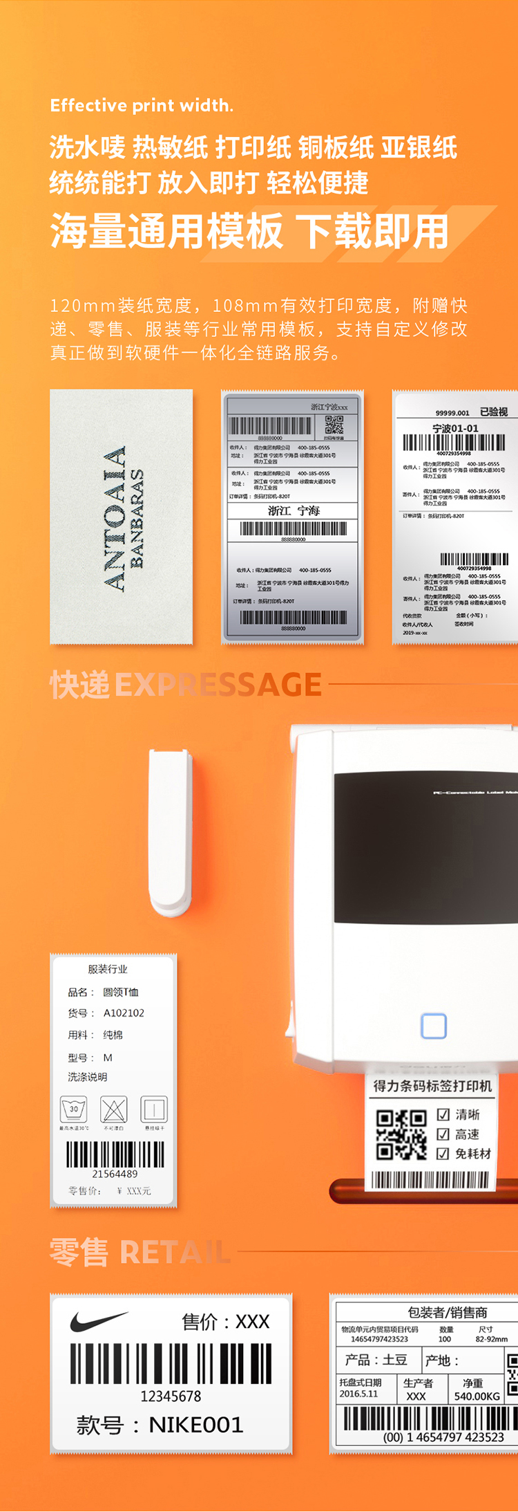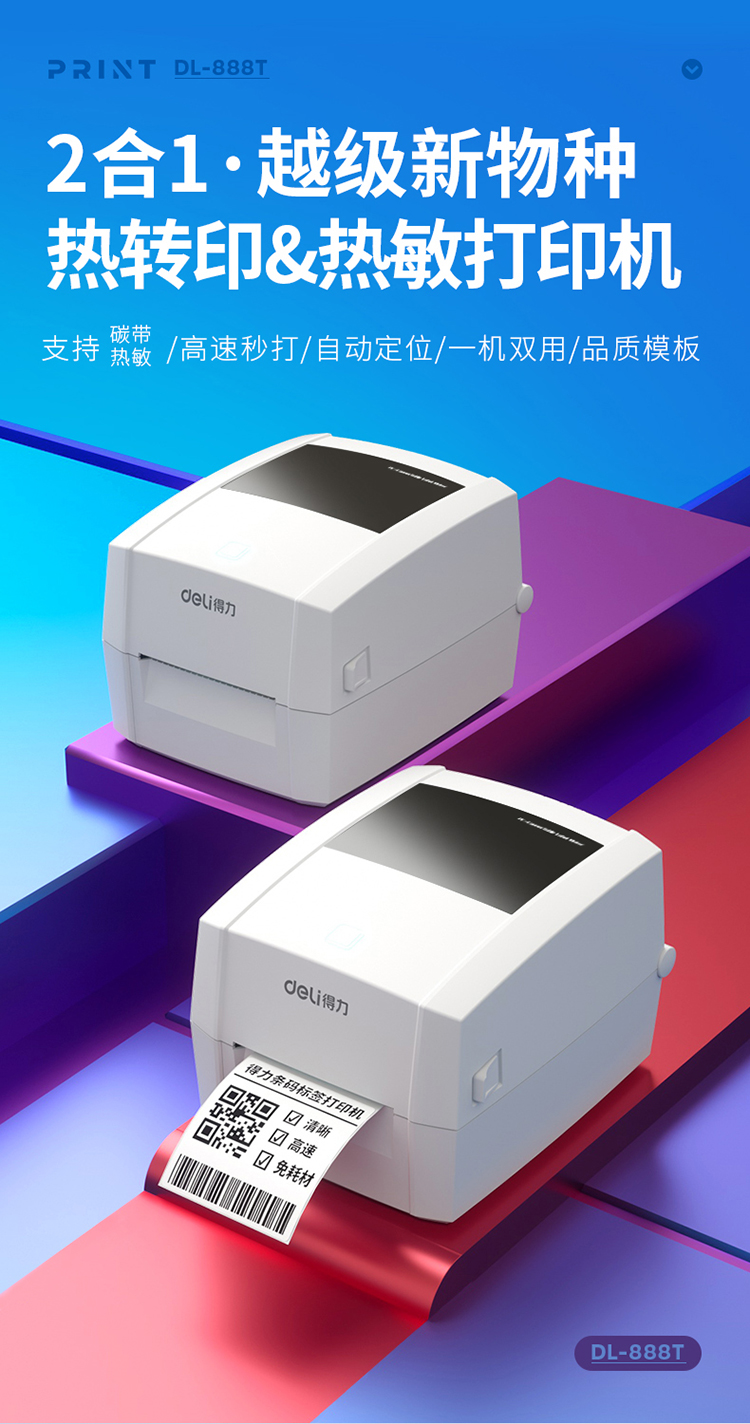 得力(deli)DL-888T热敏热转印标签打印机 电子面单...