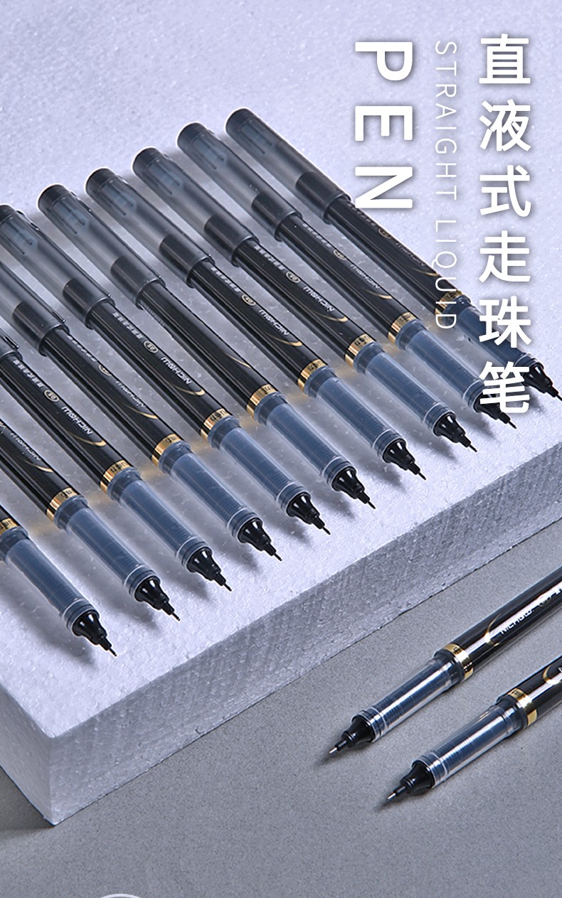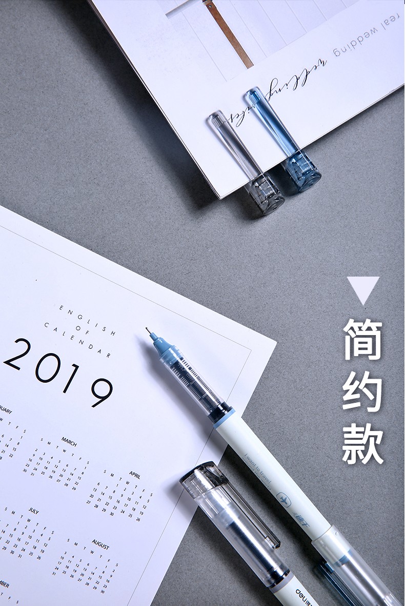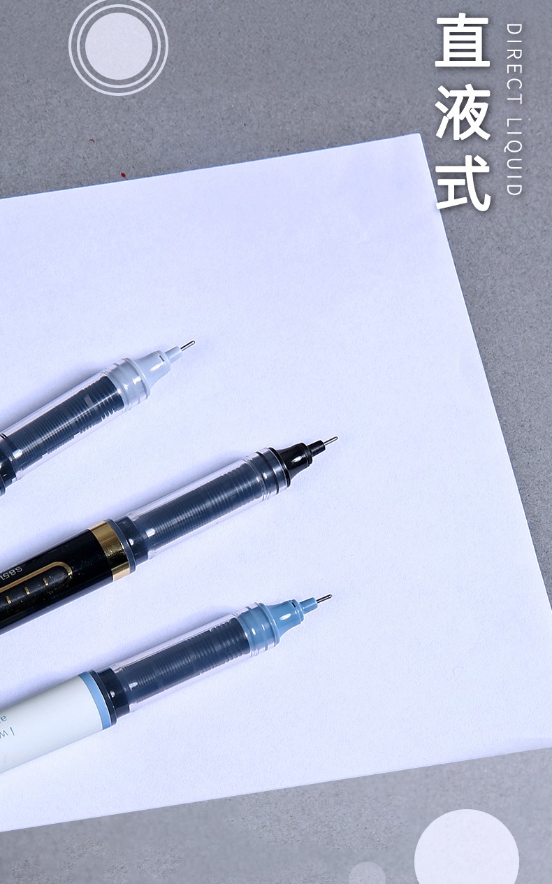 得力速干直液式走珠笔可替换芯换墨囊大容量中性笔直液笔 签字笔...