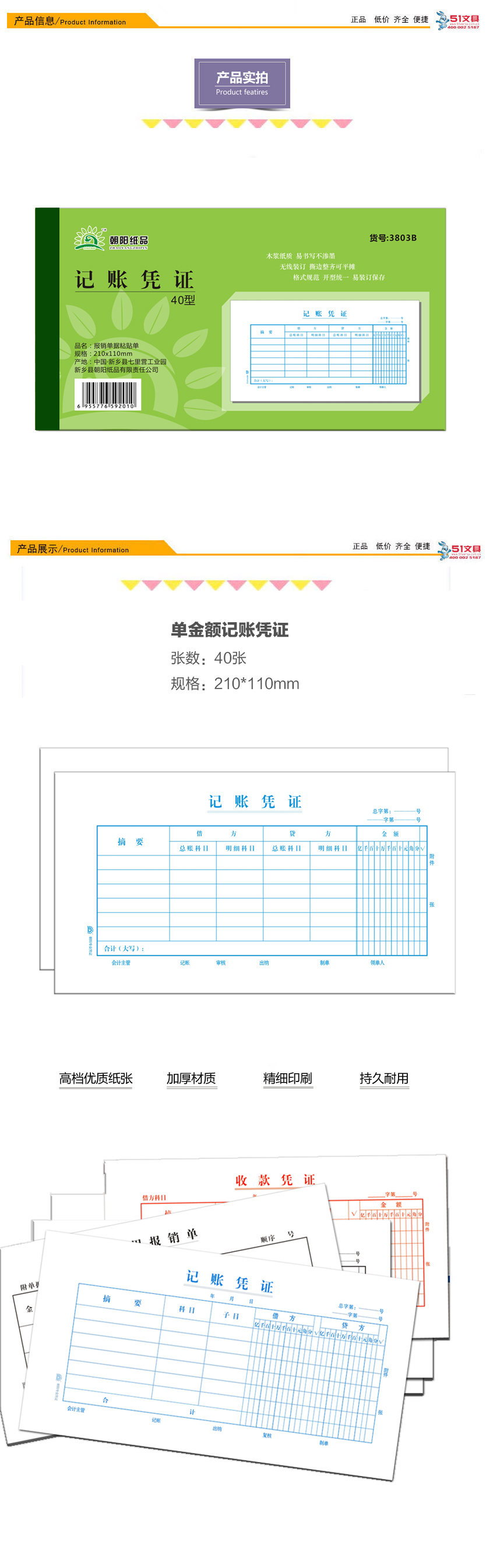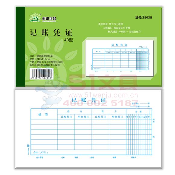 B3803 朝阳 单金额记帐凭证 单据 财务用品