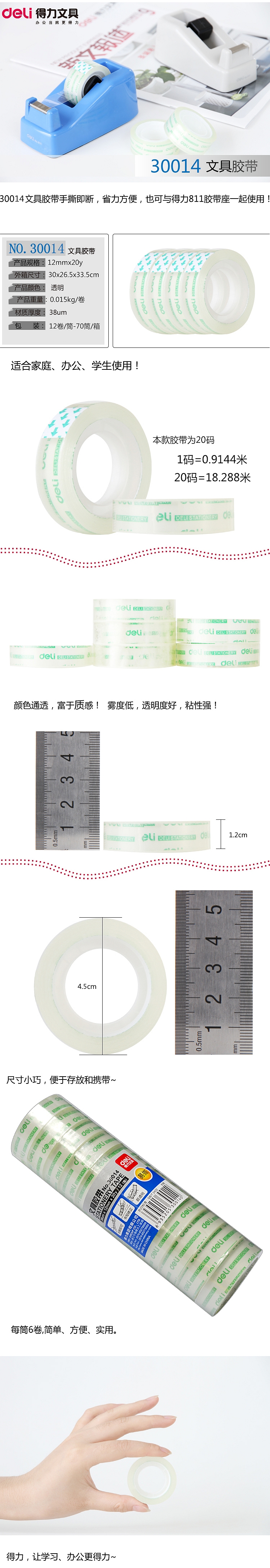 得力30014,12mm文具胶带(爆款一口价)12*20Y文...