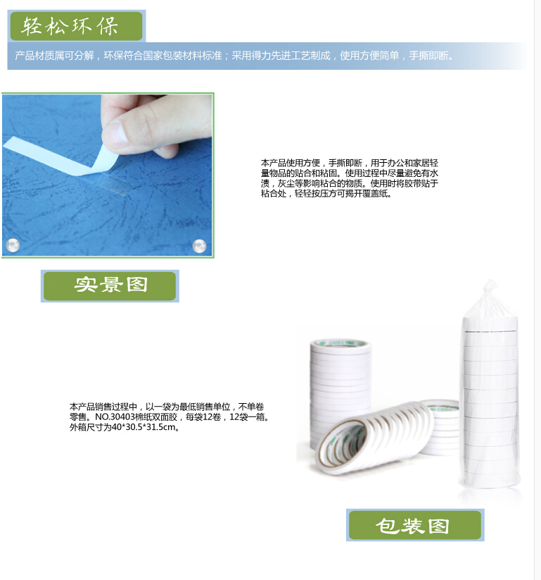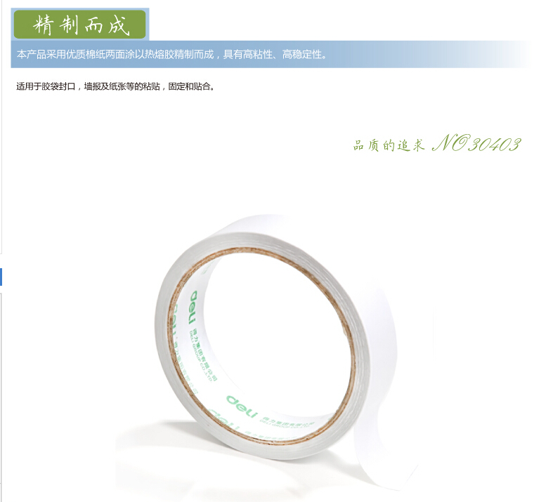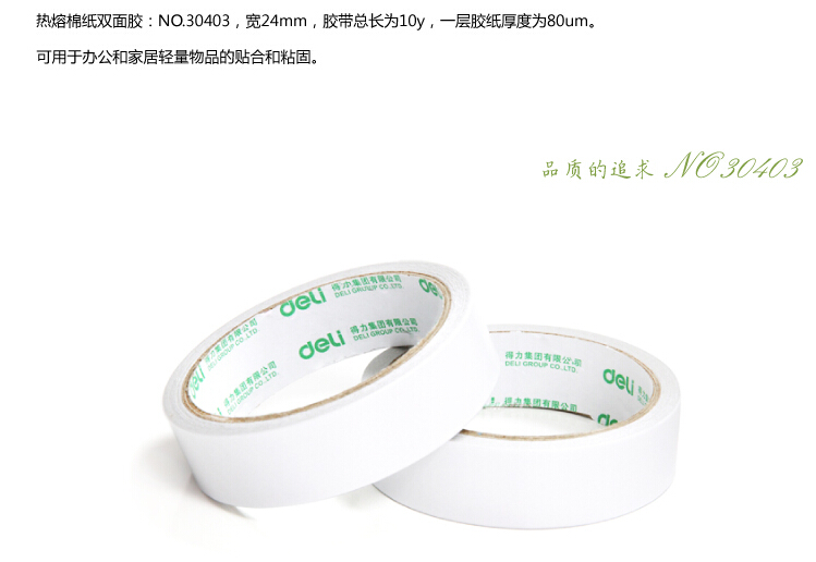 得力30403,棉纸双面胶带24mm*10y-爆款