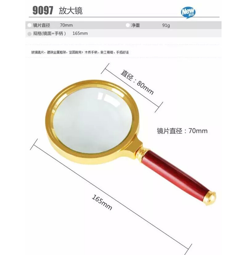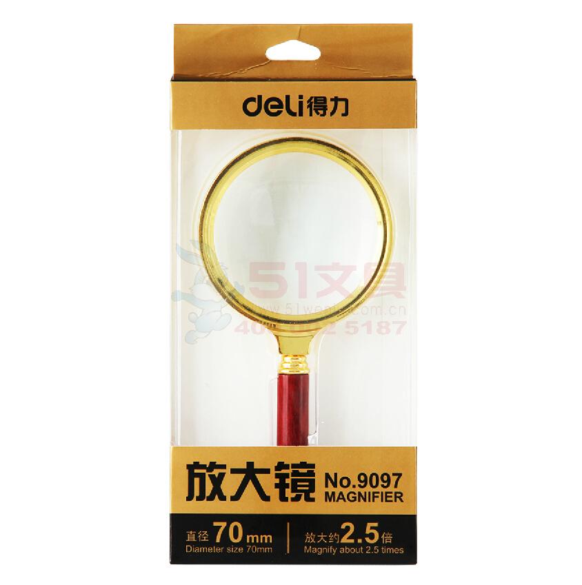 得力9097,2.5倍金属放大镜 70mm放大镜
