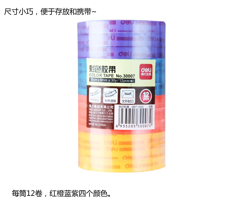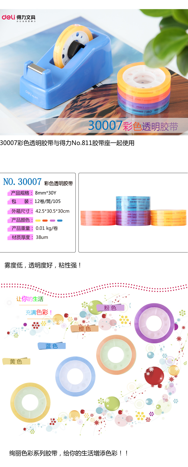 得力30007,8mm彩色文具胶带-8*30y文具胶带(爆款...