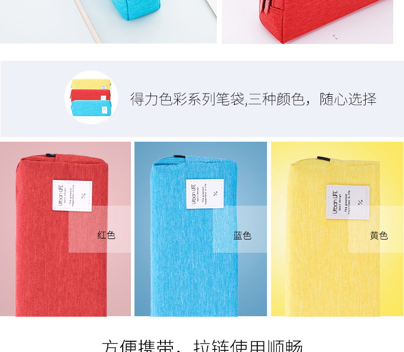 得力66714,纯色多彩笔袋