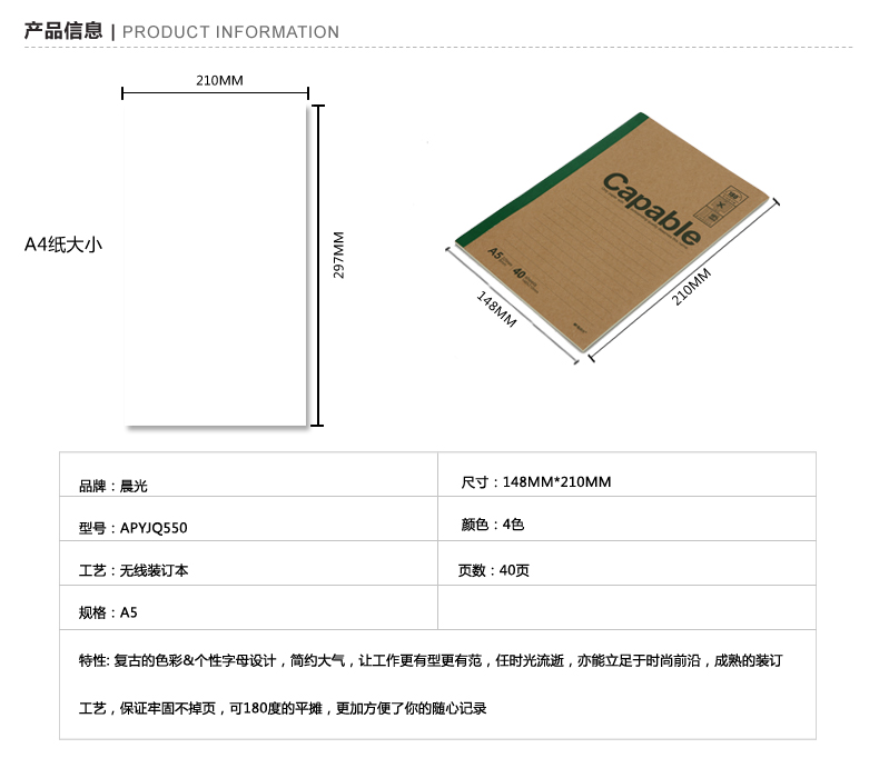 晨光笔记本,A540张80页牛卡无线装订本,A580型办公笔...