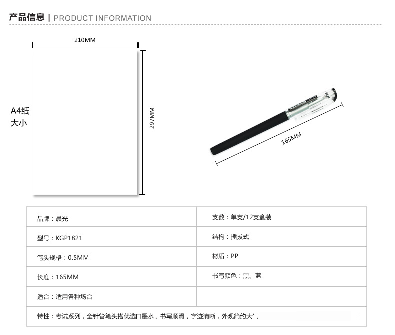 晨光KGP-1821,高碳素中性笔/全针管学生考试水笔/签字...