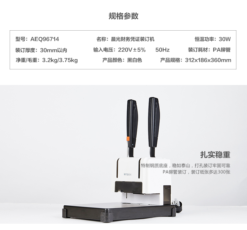 晨光AEQ96714,财务凭证装订机会计手动打孔机热熔铆管胶...