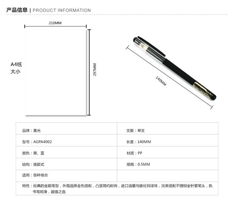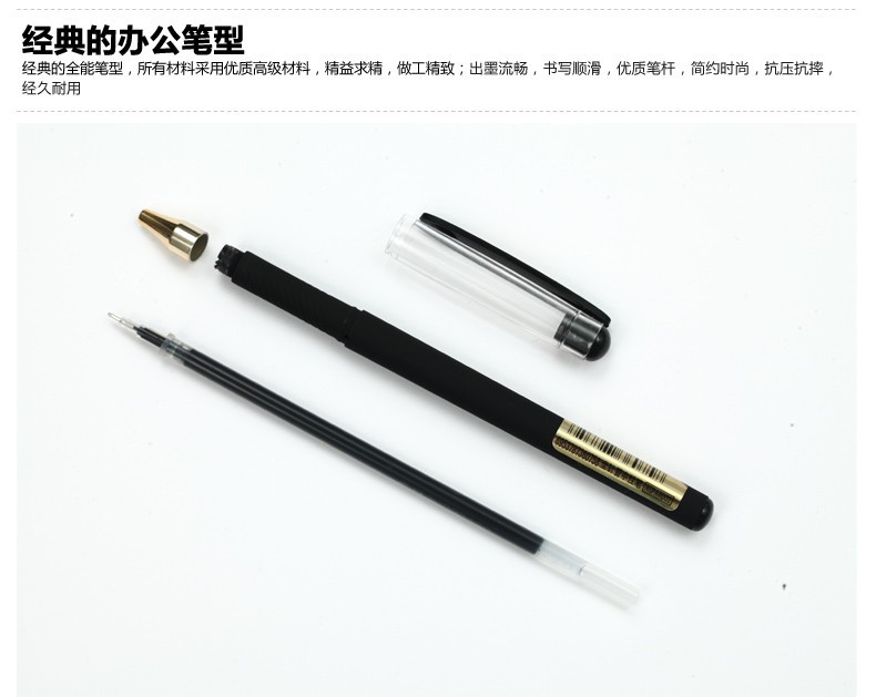 晨光AGPA4002A,0.5mm黑金纯色磨砂杆办公中性笔/...