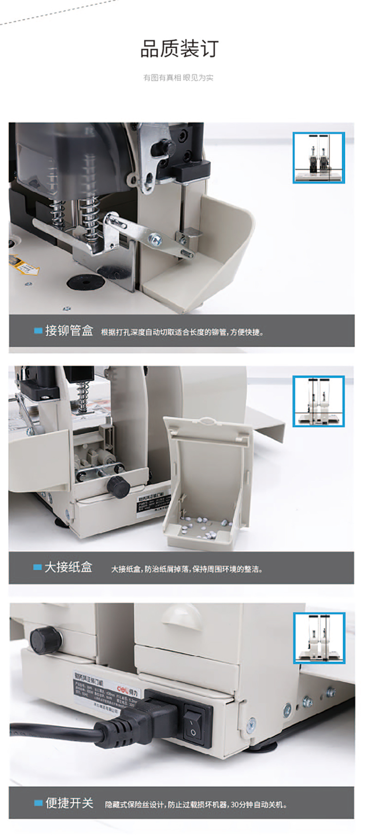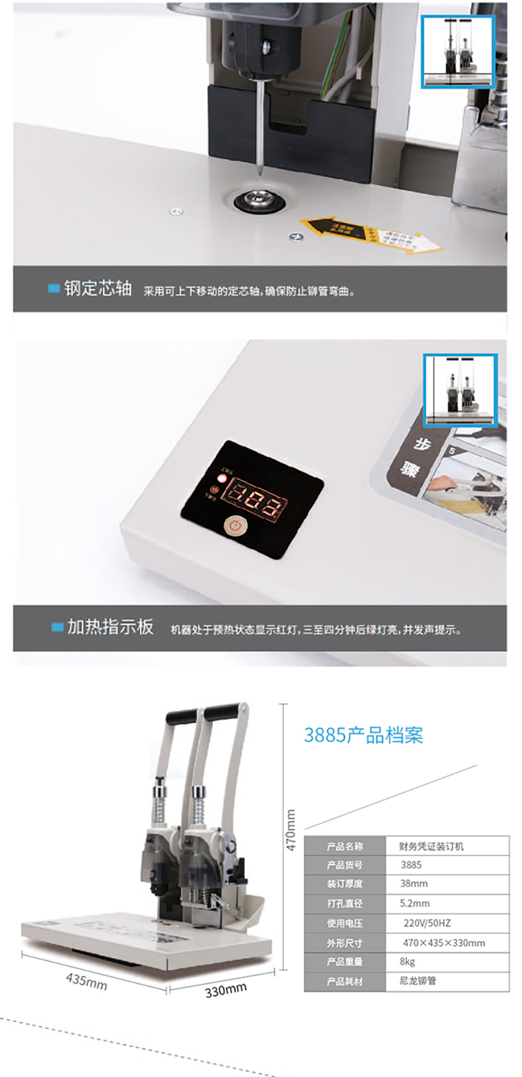 得力3885,省力型单据打孔机/财务凭证装订机/自动断电保护