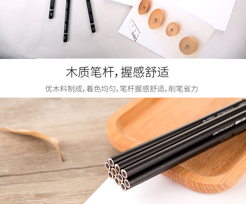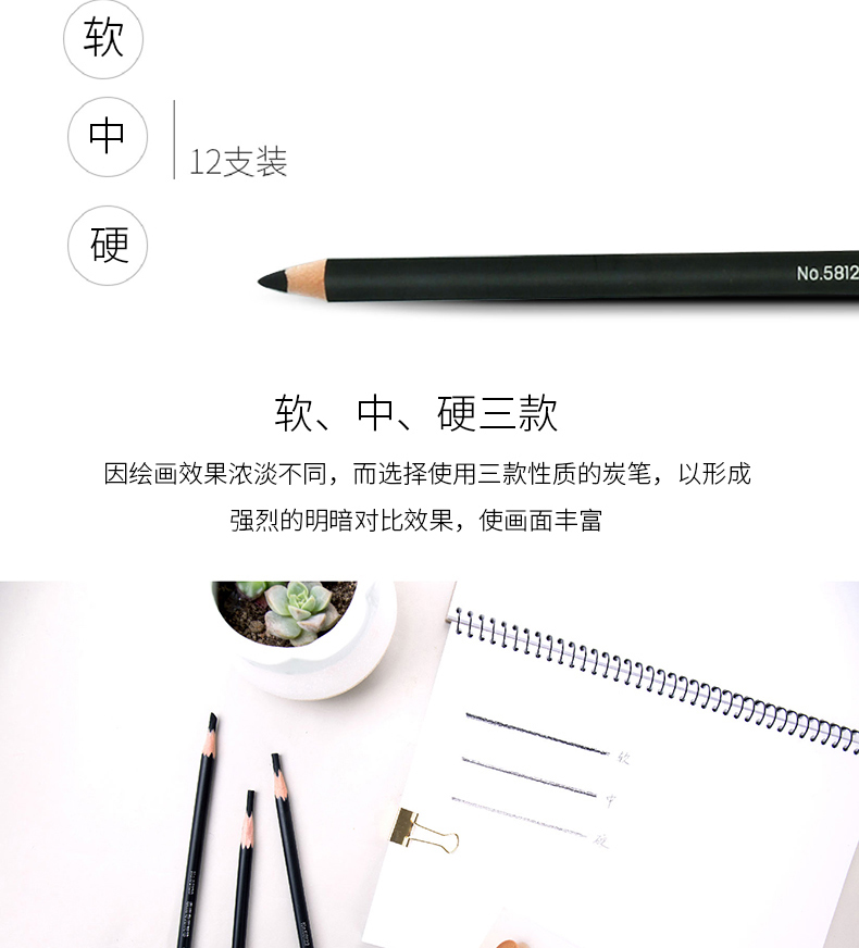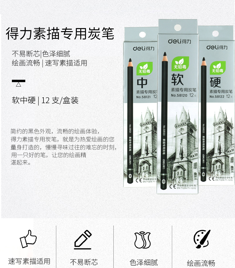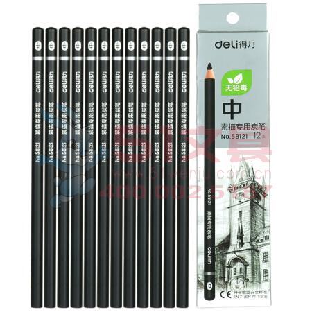 得力58121,美术素描炭笔(12支装) 石墨铅笔 中款12...