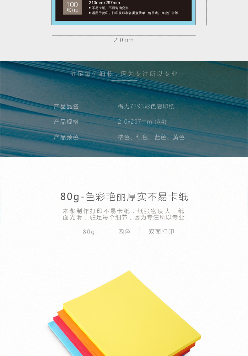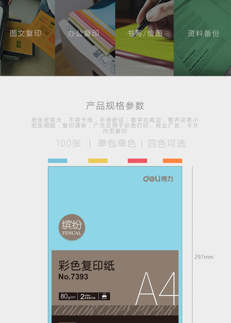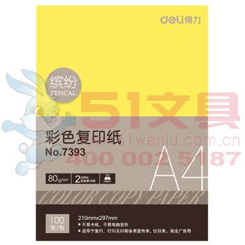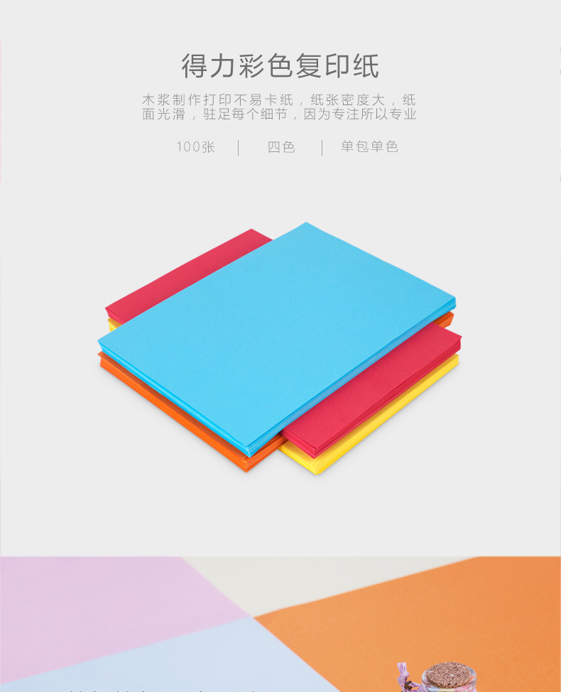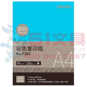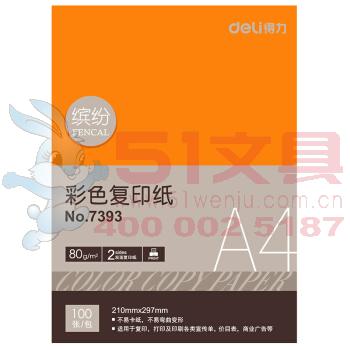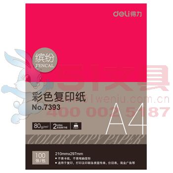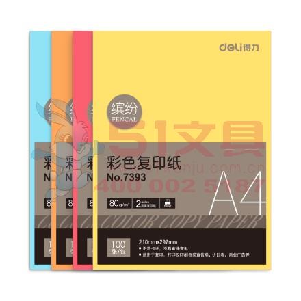 得力7393,80gA4彩色复印纸(100张装),深色系彩色...