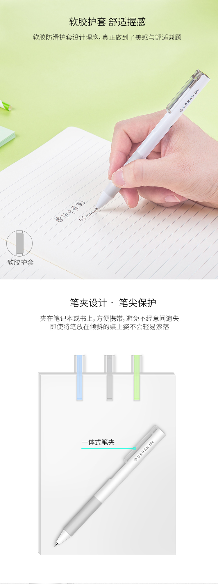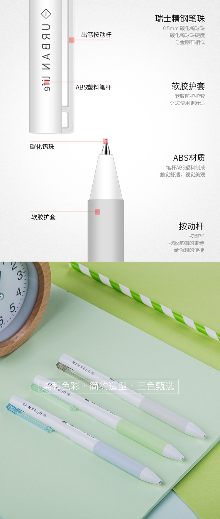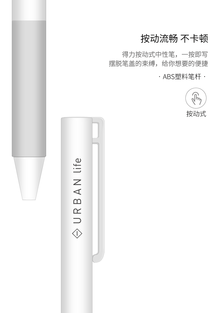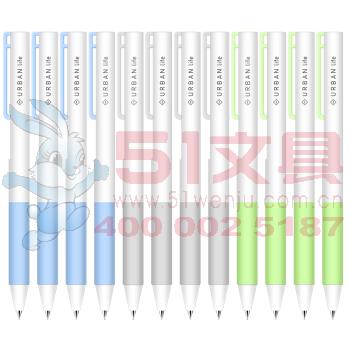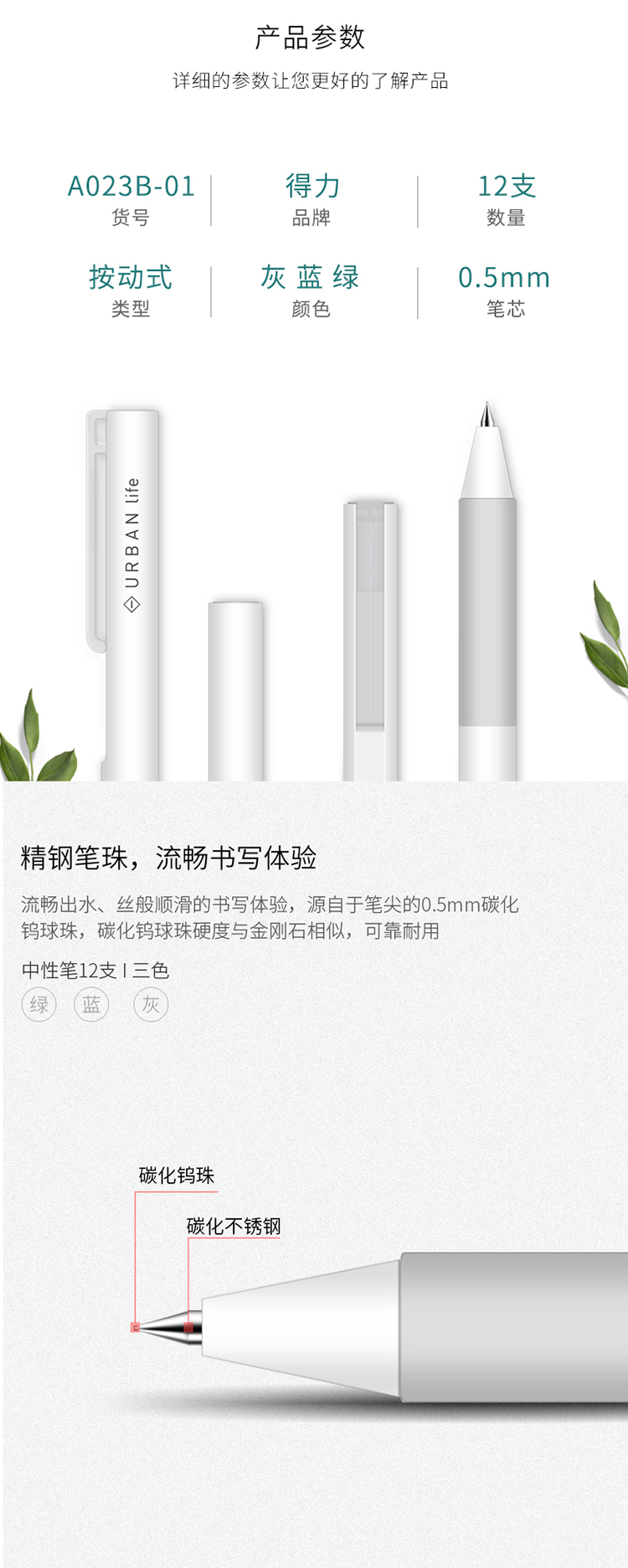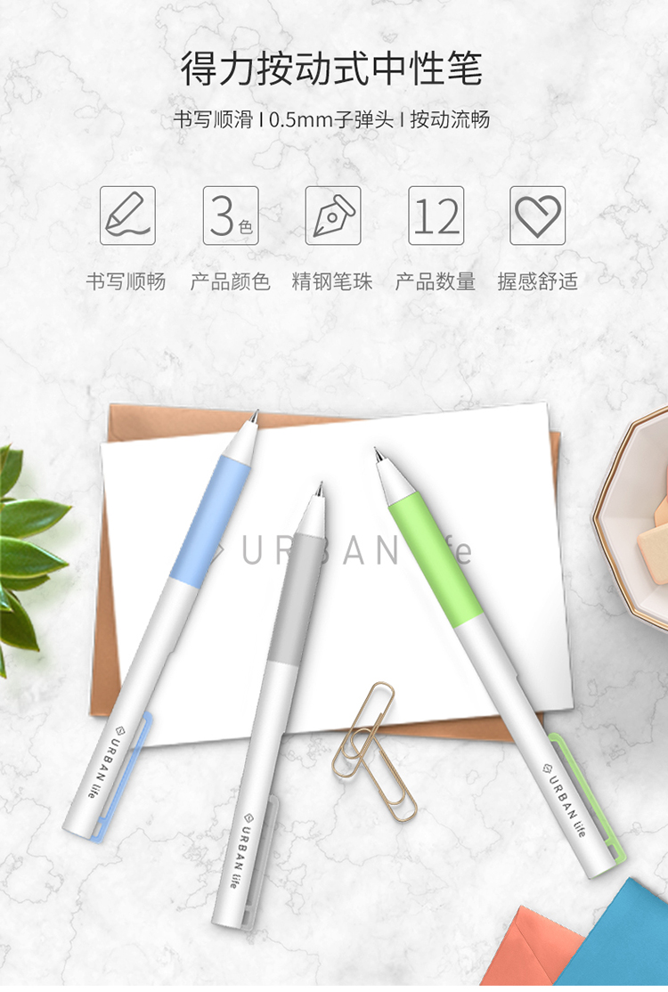 得力A023,都市生活0.5mm按动中性笔,子弹头黑色学生中...