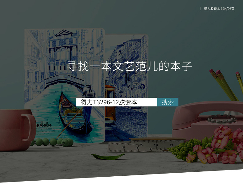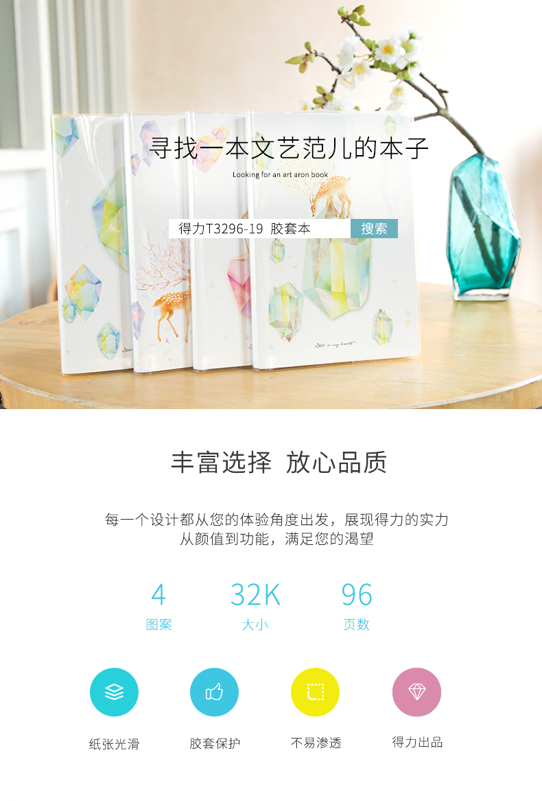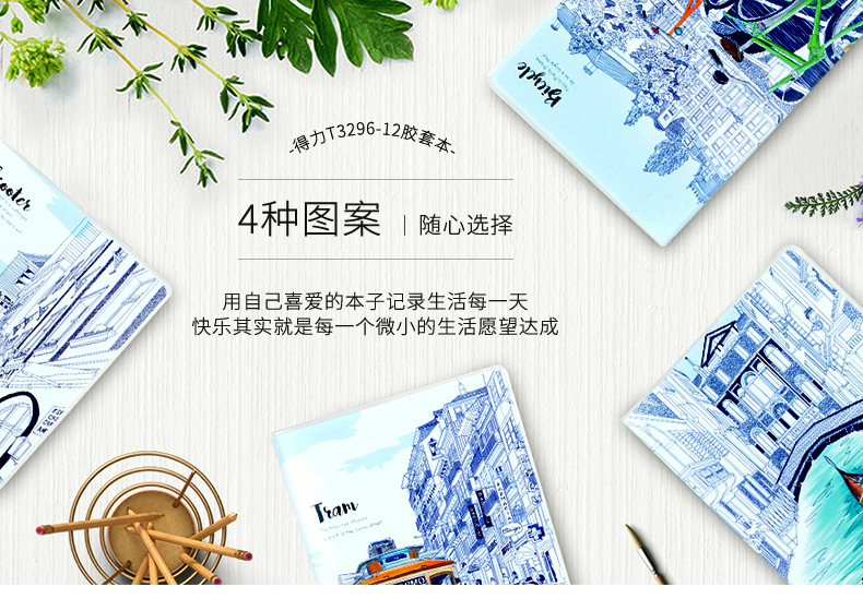 得力T3296,32K 96页 胶套本/笔记本/学生记事本日...