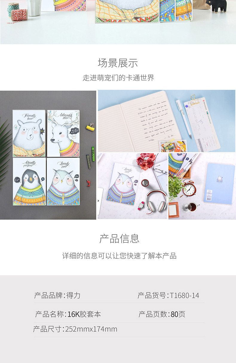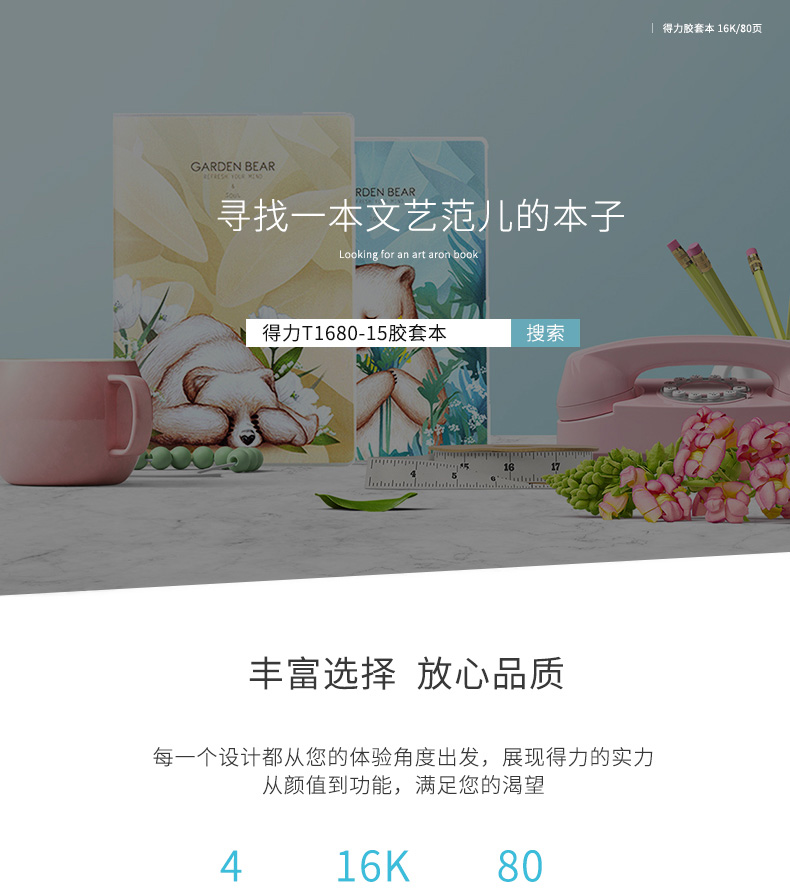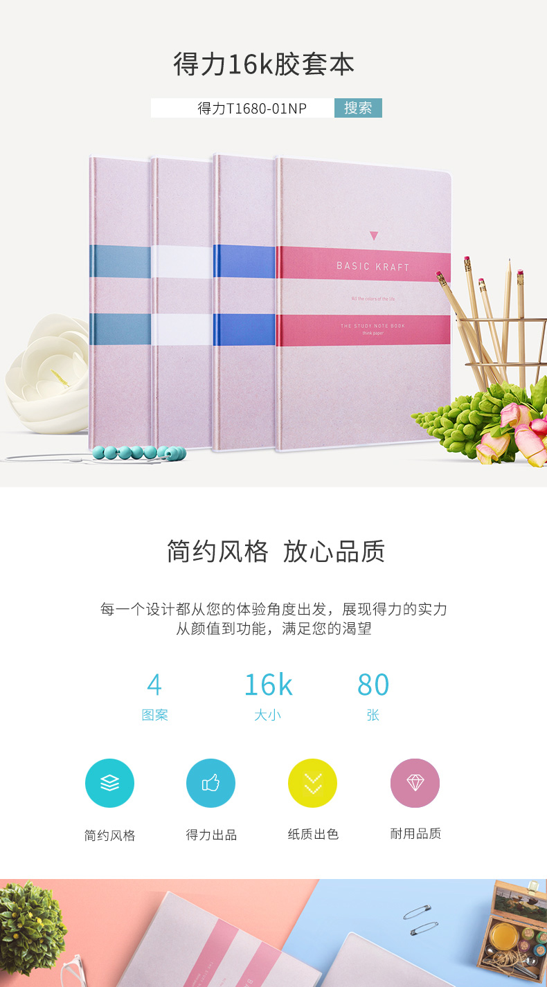 得力T1680,16K 80页 胶套本/笔记本/学生记事本日...