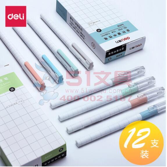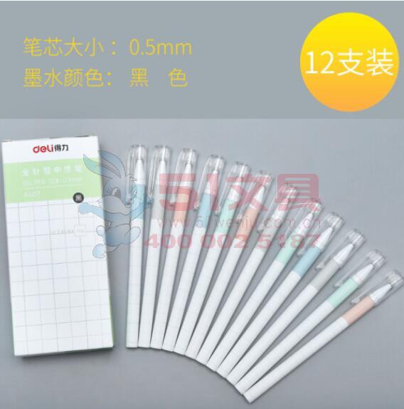 得力A407,0.5mm中性笔经济通用型子弹头水笔签字笔黑色
