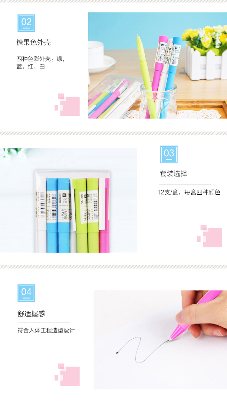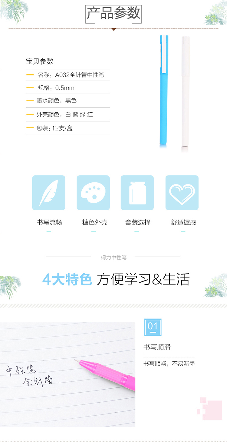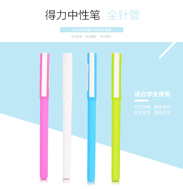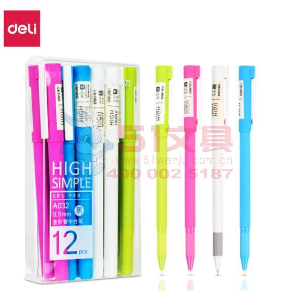 得力A032,0.5mm全针管黑色中性笔学生水笔签字笔
